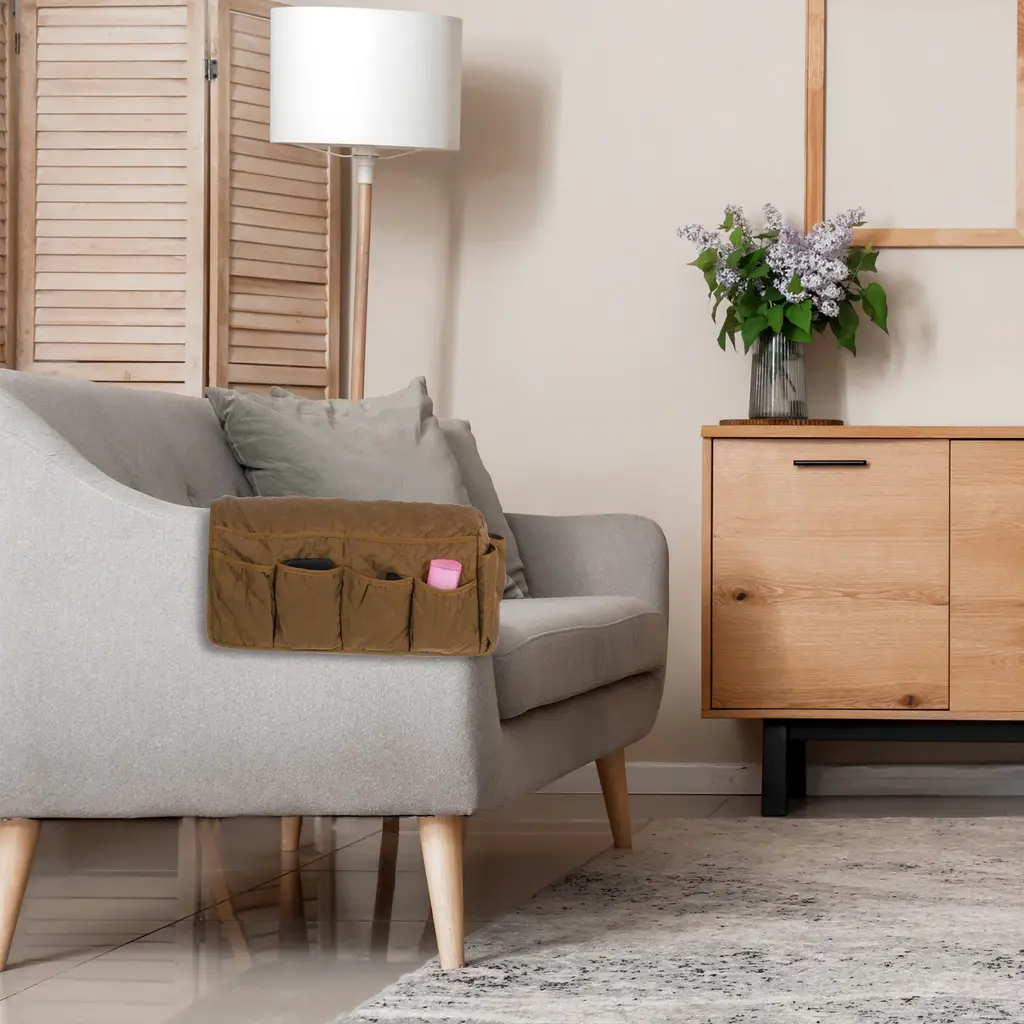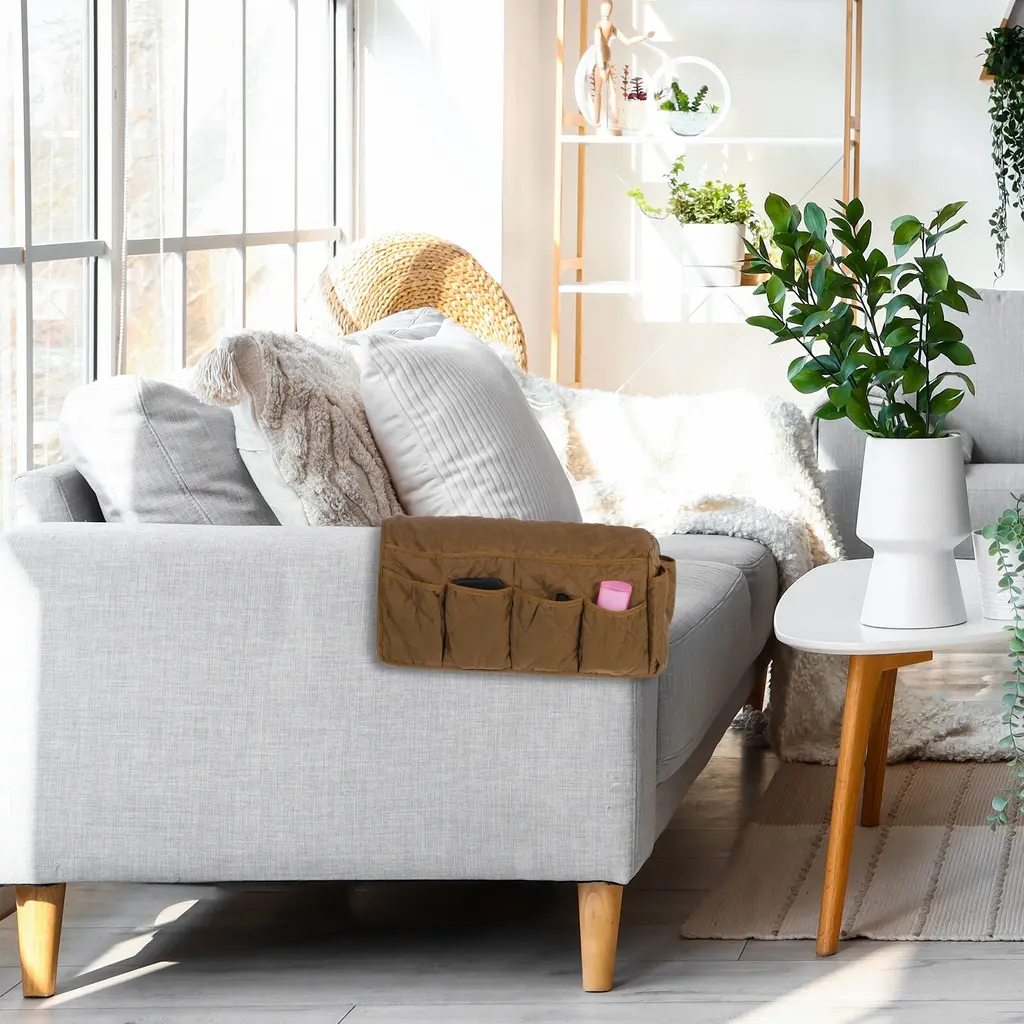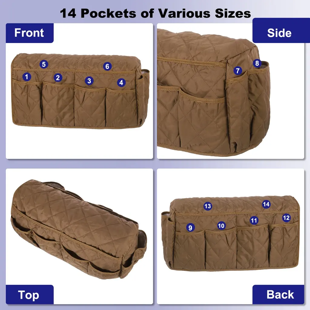 Sofa Armrest Organizer With 14 Pockets For Cell Phone Magazines - Coffee