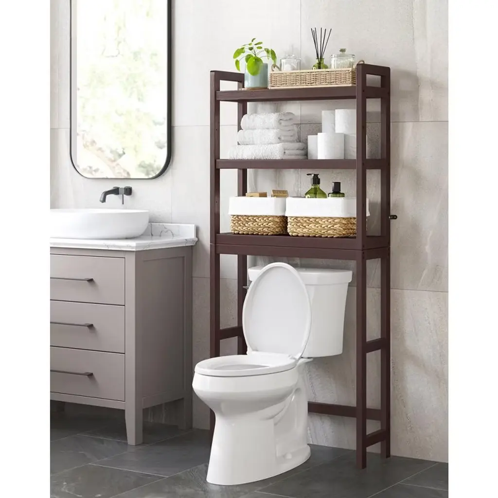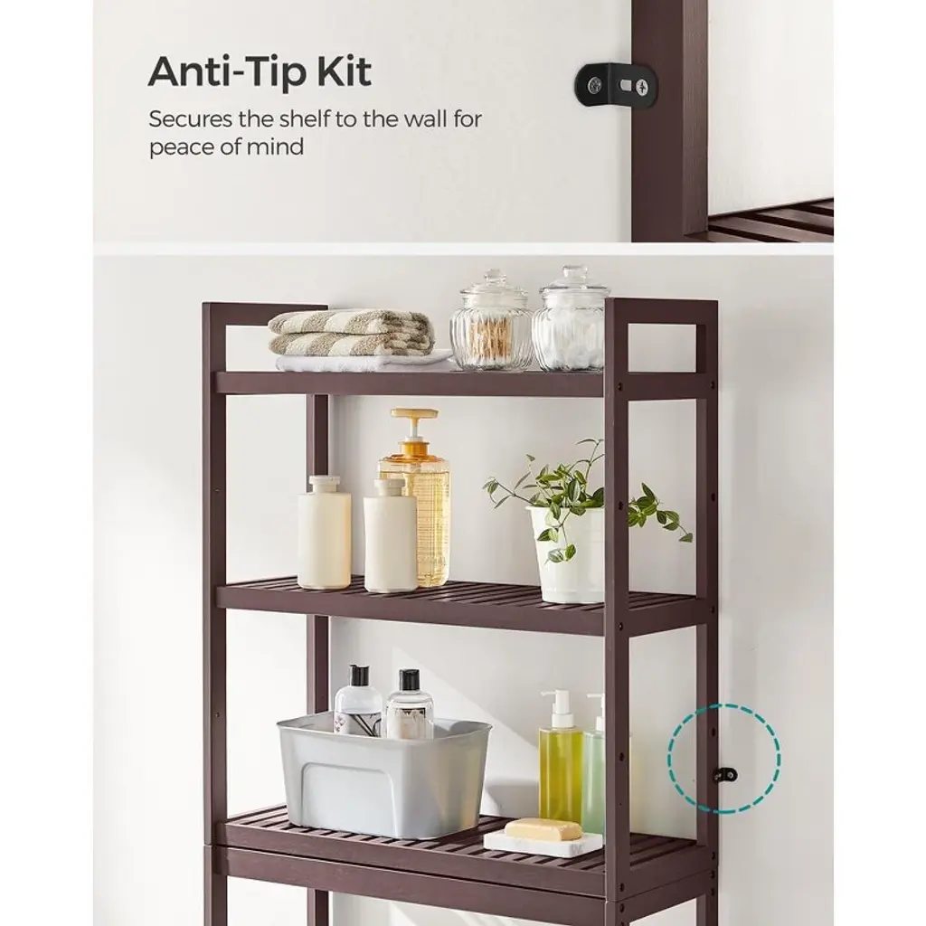 Songmics Over The Toilet Storage Bamboo 3-tier Over-the-toilet Space Saver Organizer Rack Stable Freestanding Brown