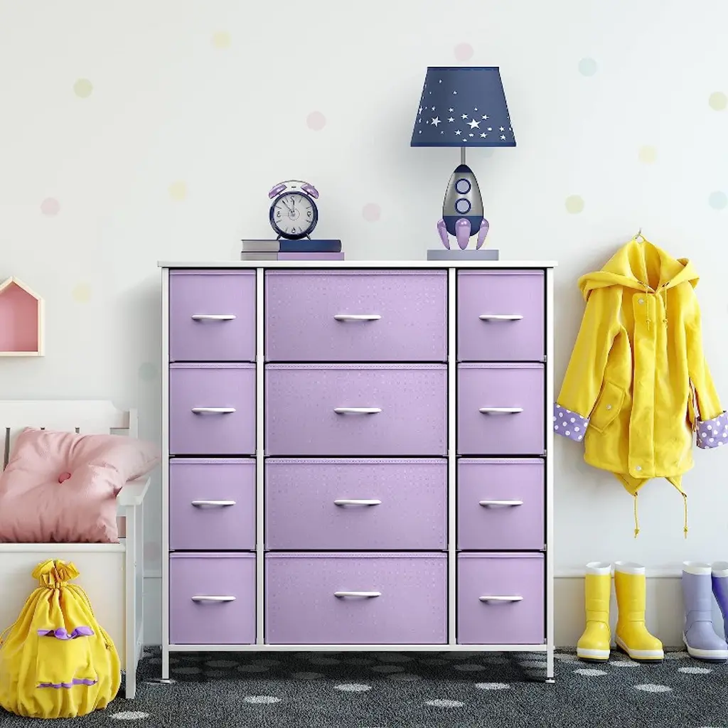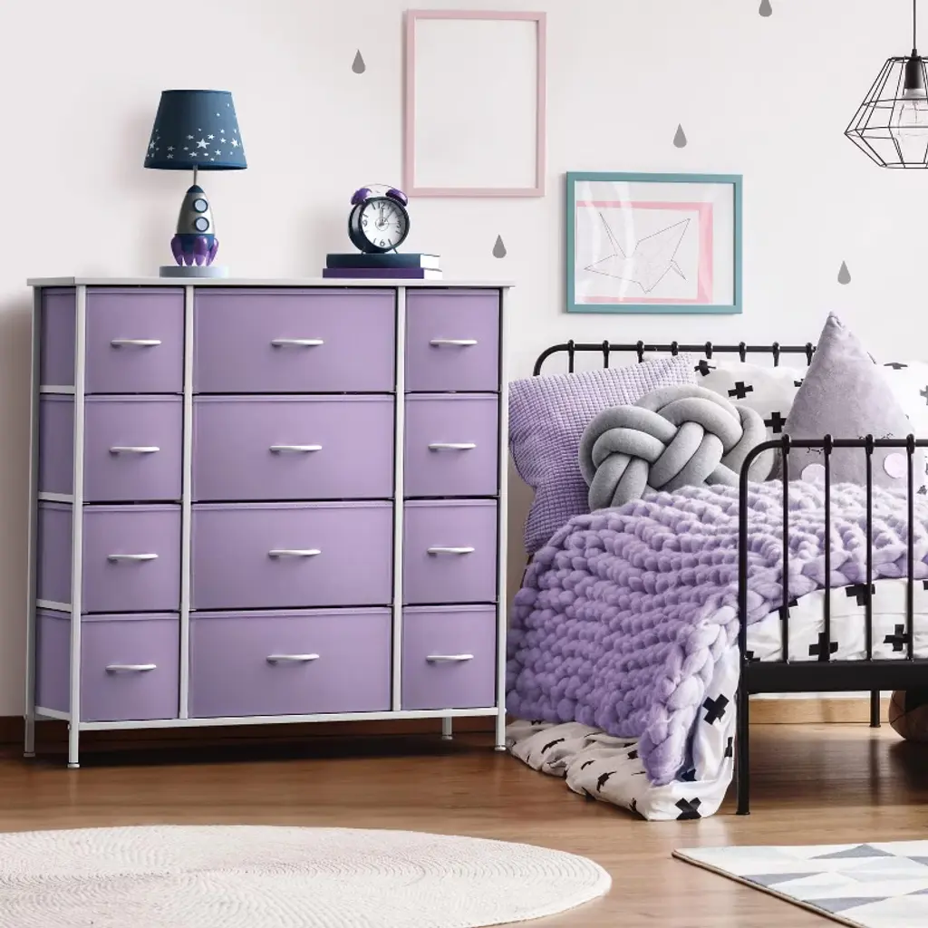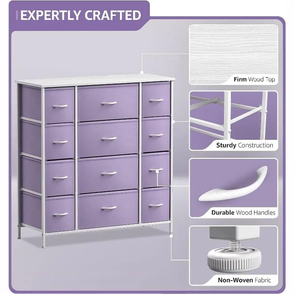 Sorbus Dresser With 12 Drawers - Chest Organizer Unit With Steel Frame Wood Top And Handle - Large Dresser For Bedroom, Hallway & Etc - Purple