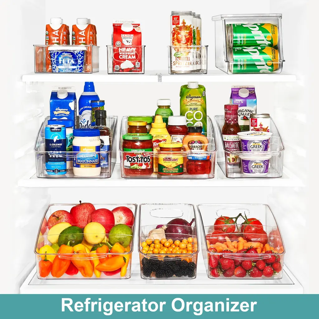 The Sorbus Clear Organizing Bins on Wheels make cooking, snacking, and packing simple and easy. Easily access small kitchen items that might otherwise get lost in the back of your fridge. Use the back wheels to pull the tray out smoothly and retrieve or restock items in seconds.