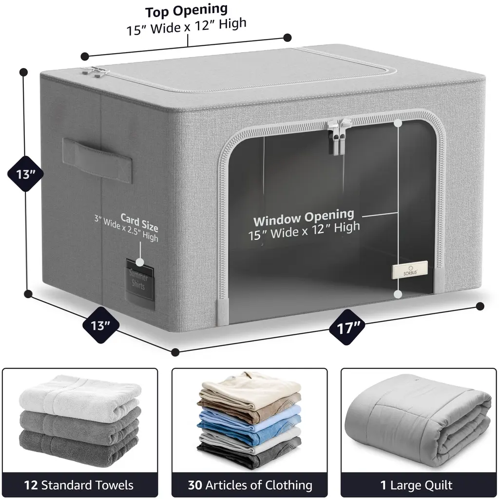 Sorbus Storage Bins And Organizers With Window And Handles - 17" L X 13" W X 13" H - Grey