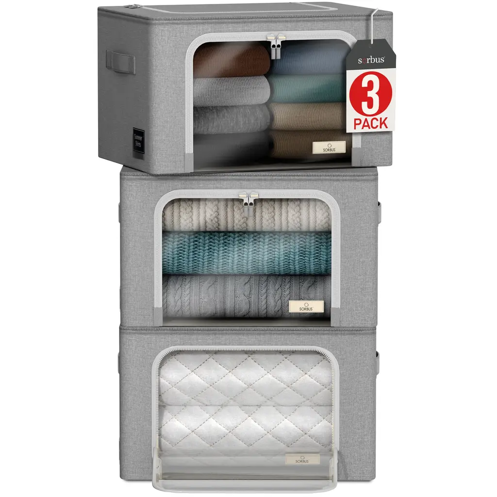 Pack, zip, and transport household essentials with this stackable storage bin, featuring a clear view and divided interior. With its front and top zipper opening makes it easy to store and remove contents. Its sturdy frame stacks above/beneath additional organizers.