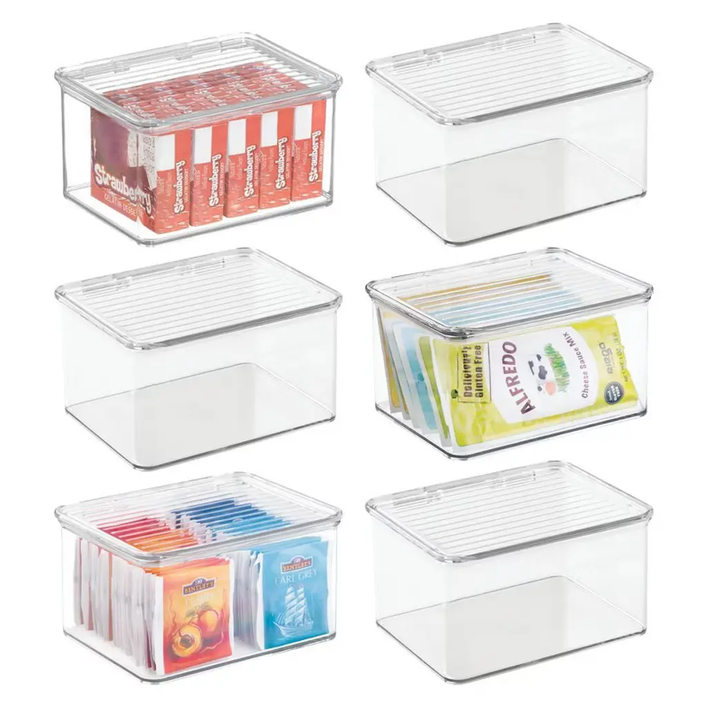 When cabinet storage is premium, the Sorbus Wedge Storage Bins make the most out of your space. This set of four bins features a pie-shaped design with built-in-handle, perfect for lazy susan corner base cabinets. Store everything from spice bottles and chip bags, to cleaning supplies, and bath necessities. For versatility, bins can be used together in a half circle, individually, or with additional bins to make a whole circle. The clear plastic makes it easy to see what's inside with a clean clutter-free look. Multi-purpose storage for any space. Whether you're stocking the pantry, making a grocery list, or tidying up household clutter, these container bins organize any room! Use in the kitchen pantry to arrange snacks for the kids, seasonings for meals, serving utensils, and much more. For multi-purpose use, store bathroom toiletries and cleaning products under the sink or to color-code crafts and accessories.The possibilities are endless! Clear corner style design. Pie-shaped triangular design with deep storage and built-in front carry handle. Stackable when not in use. Clear transparent color made of strong shatter-resistant PET plastic. BPA and Chlorine free. Clean by hand. DO NOT place in dishwasher. Measures approximately 10.50" L x 9.50" W x 4" H.