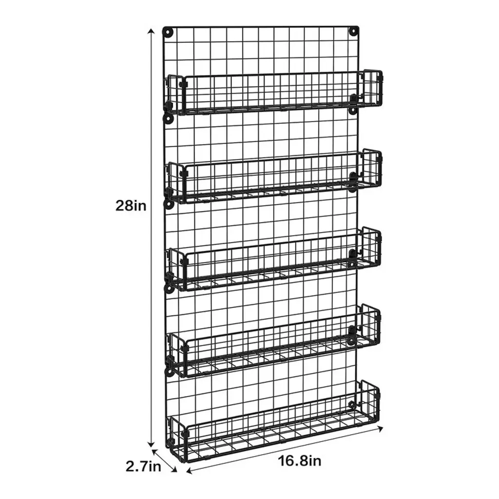 Spice Rack Organizer, 5-Tier Wall Spice Rack - 2.55"d X 17"w X 29"h - Black
