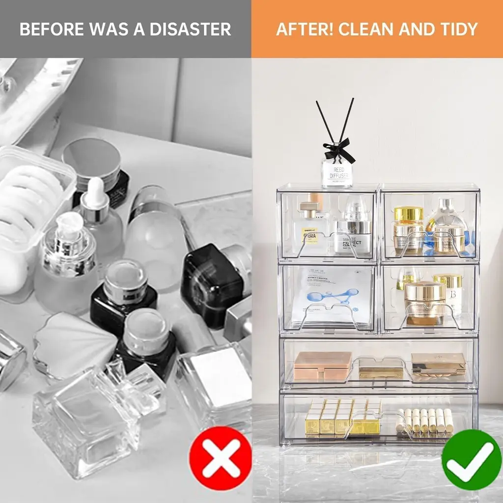Stackable Makeup Organizer Storage Drawers Set Of 6 - 2Long 4 Short