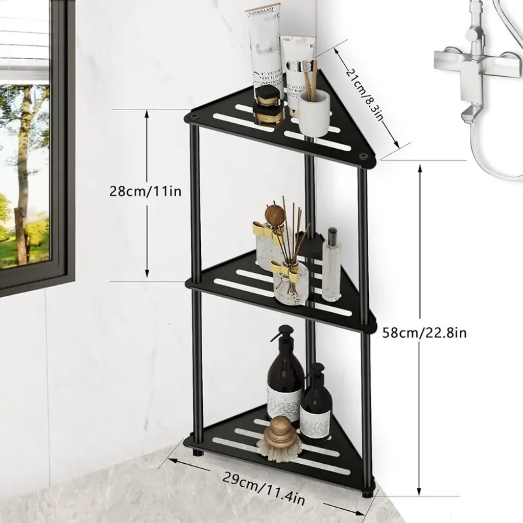 Premium Rustproof Stainless Steel – Made of high-quality waterproof stainless steel for superior sturdiness and load capacity, ensuring long-lasting durability even in wet environments.Fast-Drying Hollow Design – Features an efficient drainage system to prevent water buildup, with rubber non-slip feet for better ventilation and a cleaner, drier shower space.Versatile Storage Solution – Ideal for holding shampoo, soap, and bath essentials in bathrooms, kitchens, or laundry rooms, keeping your space neat and organized.Compact Corner-Saving Design – fitting snugly in shower corners while maximizing storage with multi-tier shelves and guardrails to prevent spills.Quick & Hassle-Free Assembly – Comes with all necessary tools and clear instructions for easy setup in just minutes—no extra hassle required.