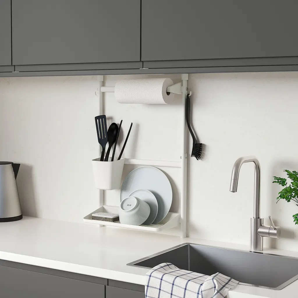 Sunnersta Kitchen Organizer Set - No Drill/kitch Roll Hldr/dish Drnr/cont