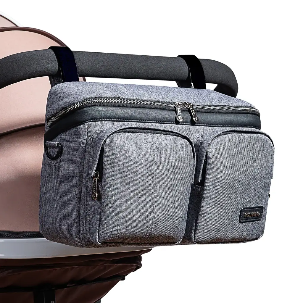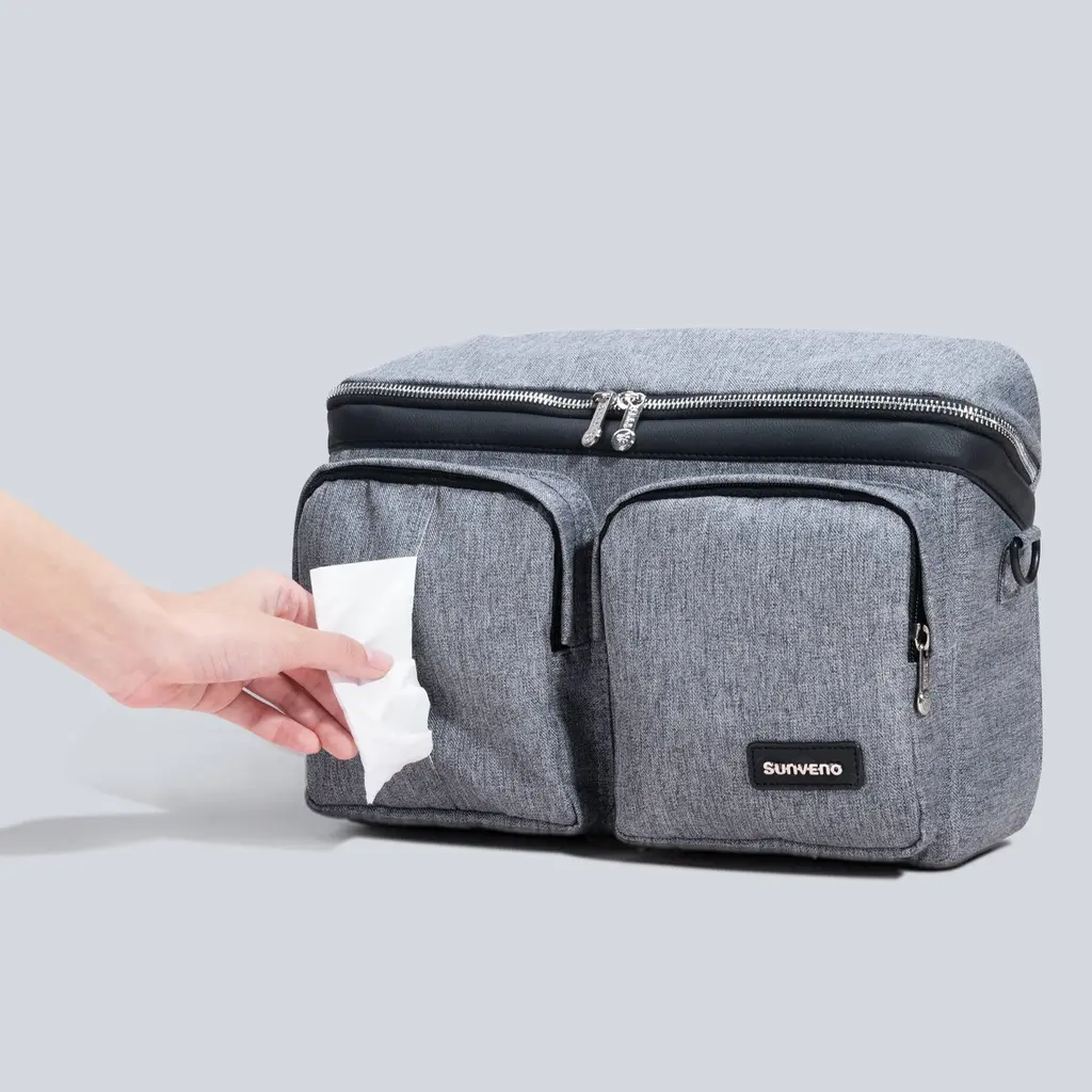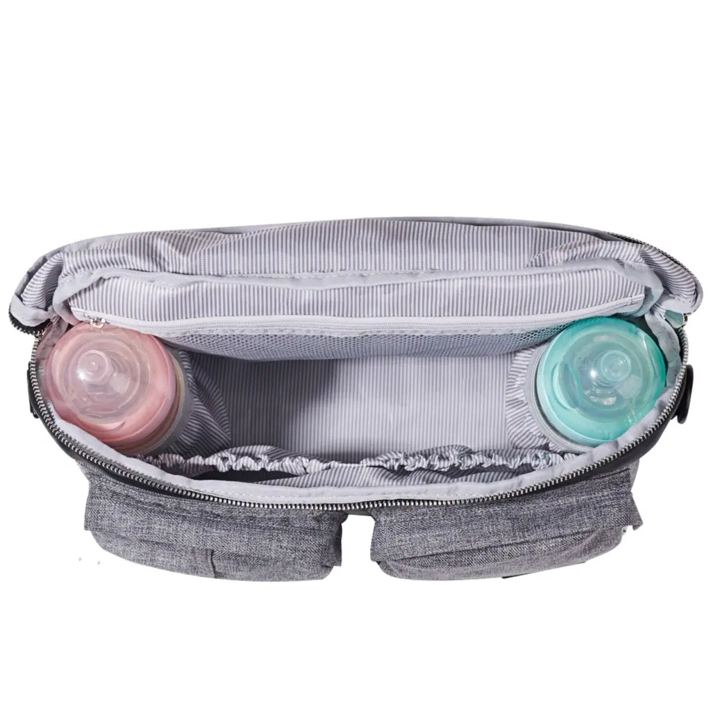 Keep all your baby essentials within reach with the Sunveno Premium Stroller Organizer Bag. Designed for modern parents, this spacious caddy offers multiple compartments for bottles, diapers, toys, and personal items. Made from high-quality, water-resistant fabric, it ensures durability and easy cleaning. The universal fit straps securely attach to most stroller handles, making it perfect for daily outings and travel.Features: