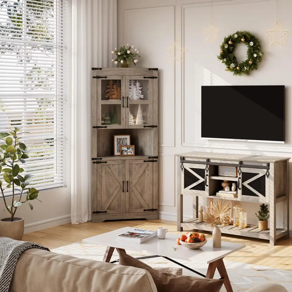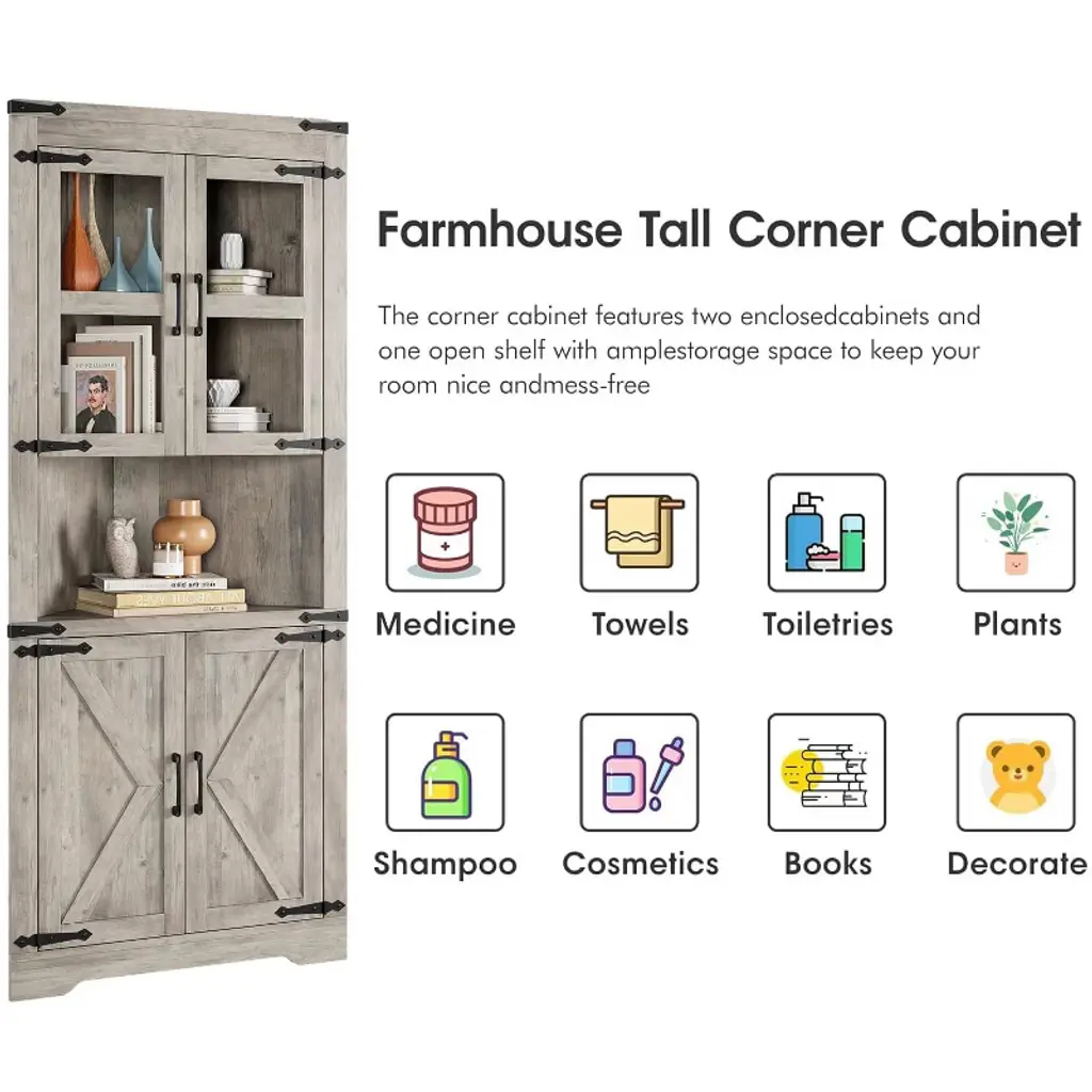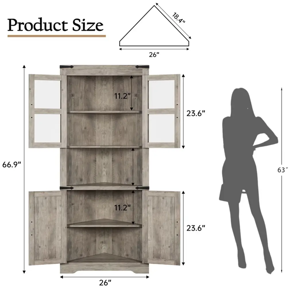 Tall Corner Storage Cabinet, Bathroom Floor Storage Cabinet with Doors and Adjustable Shelves, Freestanding Tall Cabinet Organizer for Bathroom, Kitchen, Living Room