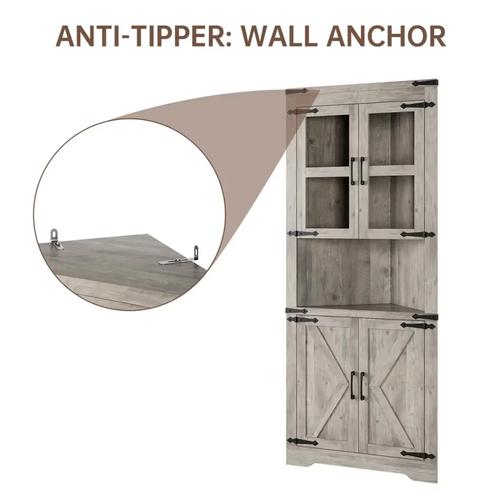 Tall Corner Storage Cabinet, Bathroom Floor Storage Cabinet With Doors And Adjustable Shelves, Freestanding Tall Cabinet Organizer