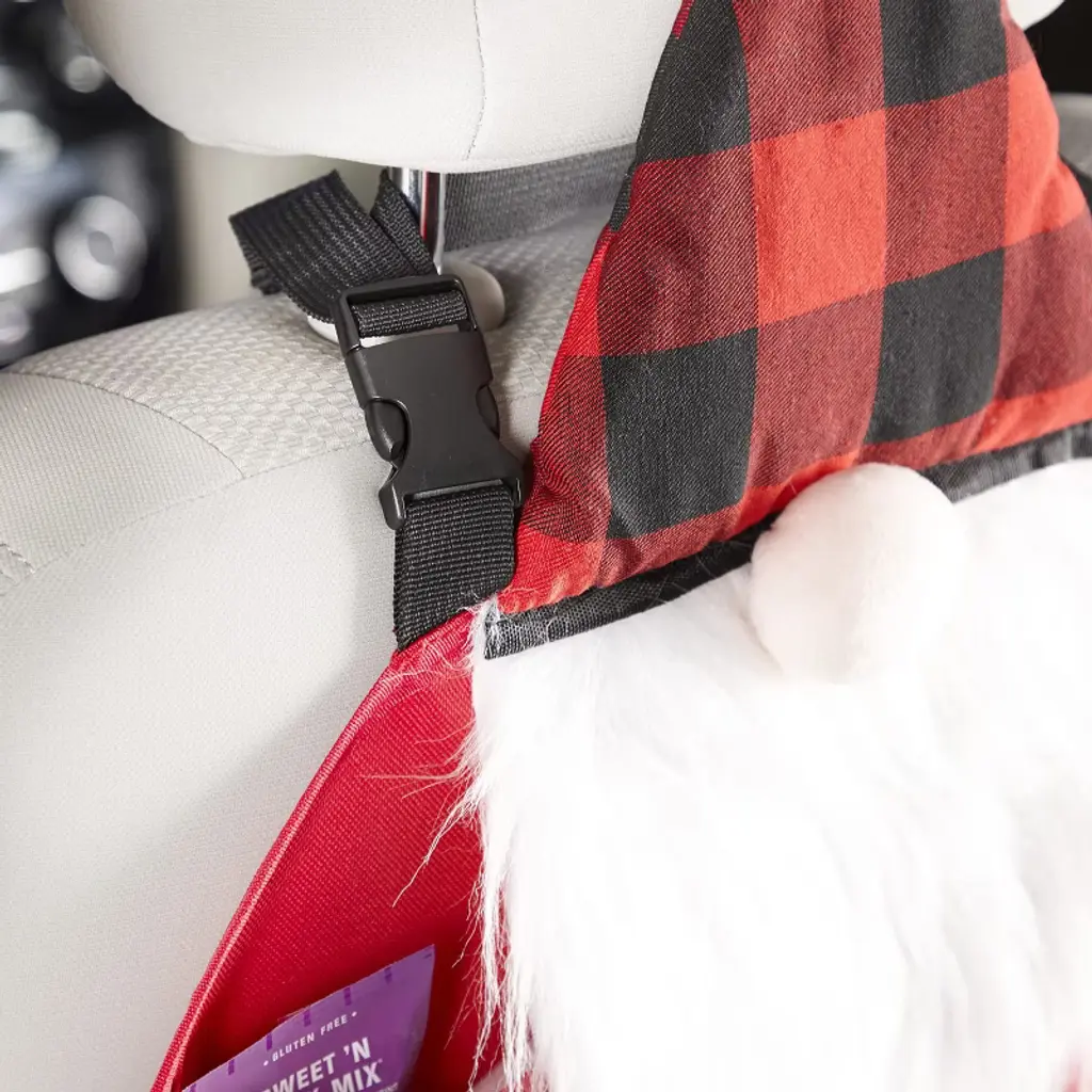 Keep your vehicles's backseat neat and tidy with this car organizer. The adorable gnome in the buffalo plaid hat makes this #1 in the category of cute car accessories. If you travel with kids, a backseat organizer is one of those car essentials you can't do without. It makes a great car toy organizer for the back seat. 19-1/4"W x 30"L. Polyester.