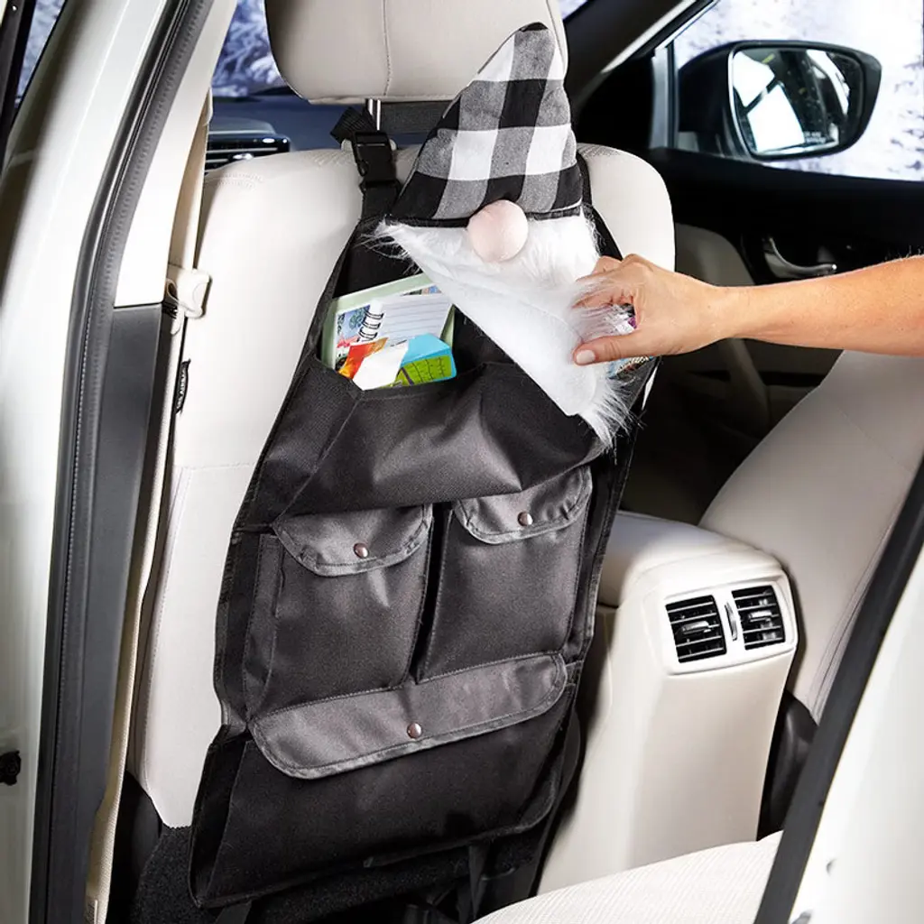 Keep your vehicles's backseat neat and tidy with this car organizer. The adorable gnome in the buffalo plaid hat makes this #1 in the category of cute car accessories. If you travel with kids, a backseat organizer is one of those car essentials you can't do without. It makes a great car toy organizer for the back seat. 19-1/4"W x 30"L. Polyester.