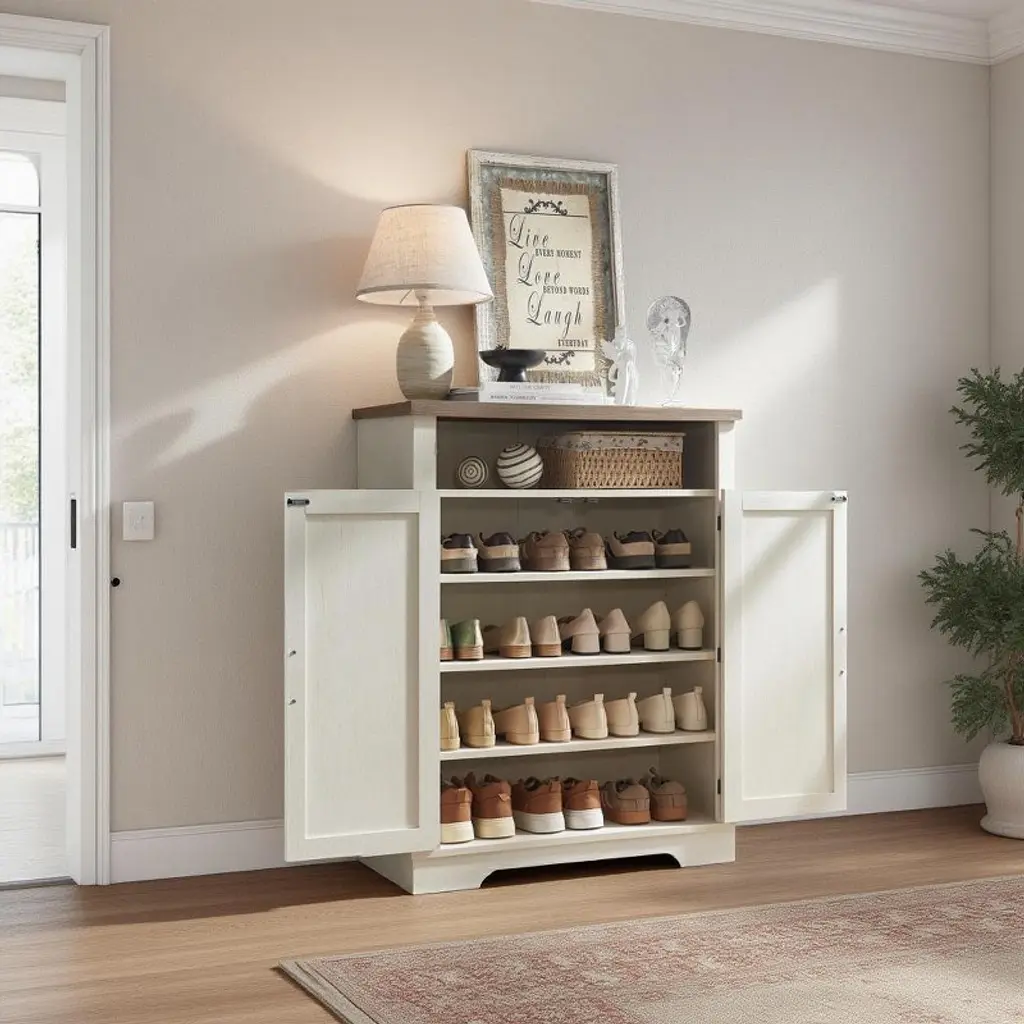 Tiramisubest 6-tier Farmhouse Shoe Storage Cabinet With Adjustable Shelves & 2-tier Open Storage,freestanding Entryway Organizer, White & Oak