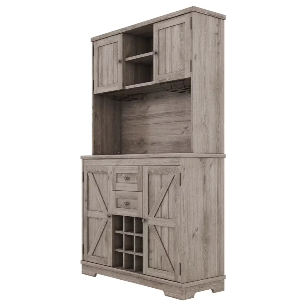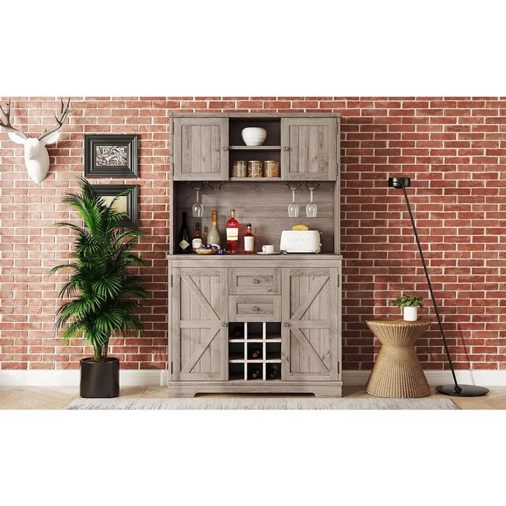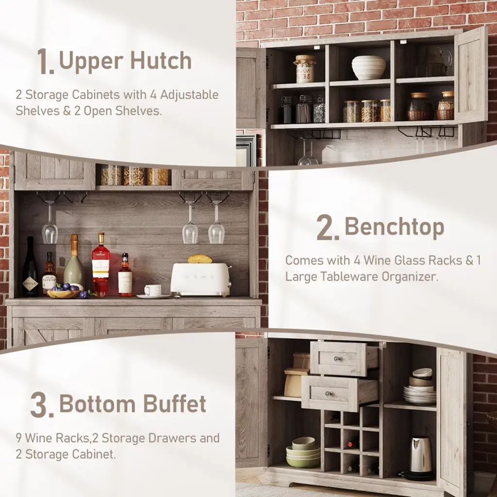 Tiramisubest Farmhouse Coffee Bar Cabinet - Wine Storage With Glass Racks & Drawers, Kitchen Buffet Organizer For Dining Room, Oak