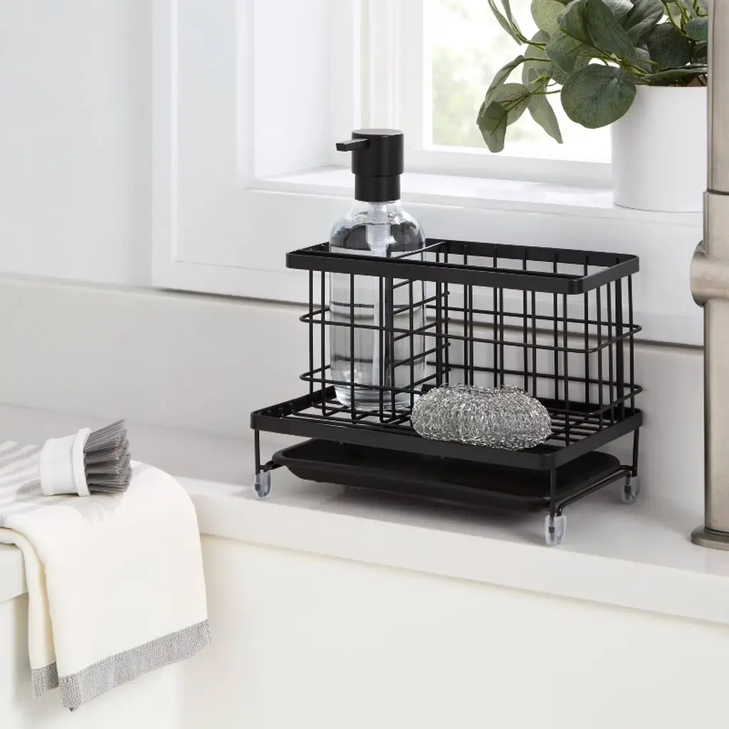 Top Of Kitchen Sink Sponge Brush And Caddy Organizer Black - Brightroom™