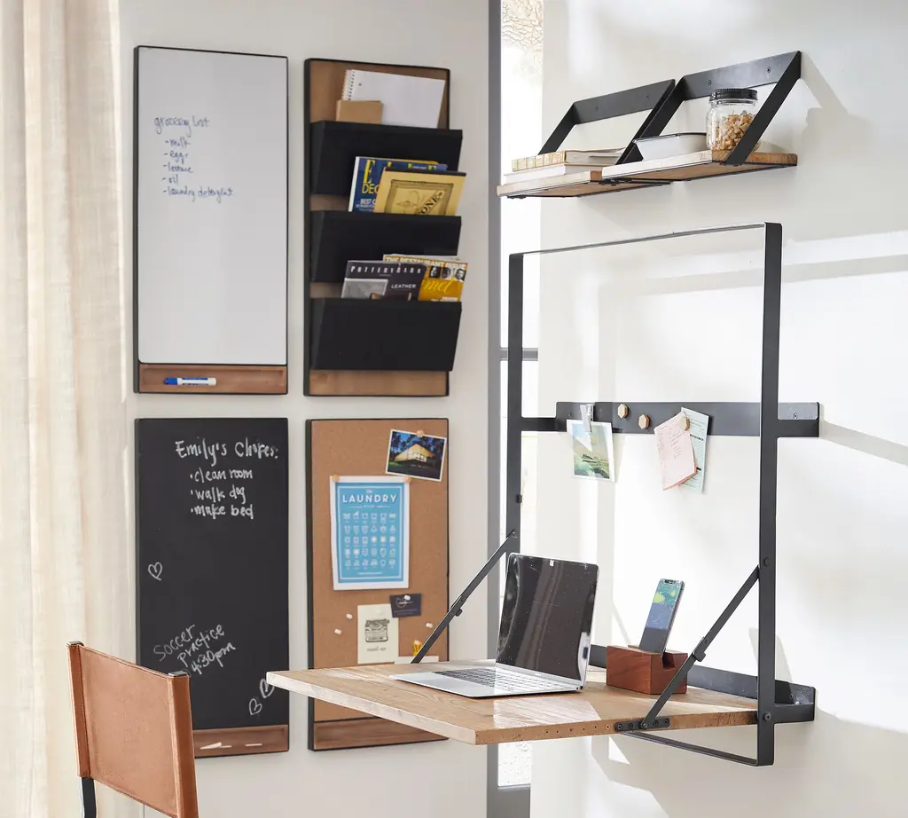 Modern yet rustic, this puts your walls to work with a mixed-material design of wood and metal. Specifically designed for your home office (or the corner of any room), this setup includes boards for to-do lists and sticky notes, shelves and a file organizer for storage, and a space-saving desk. Our Trenton Collection is proudly made at a Fair Trade Certified™ factory.