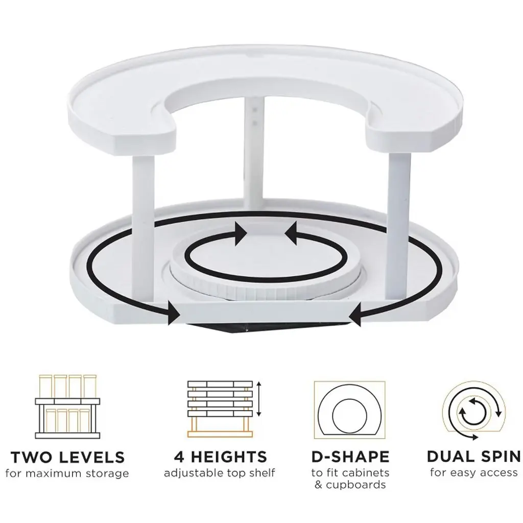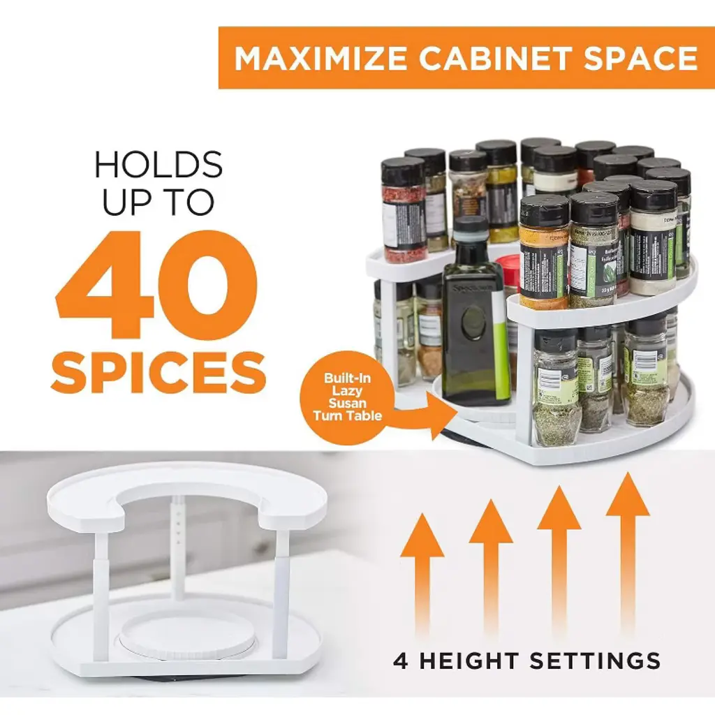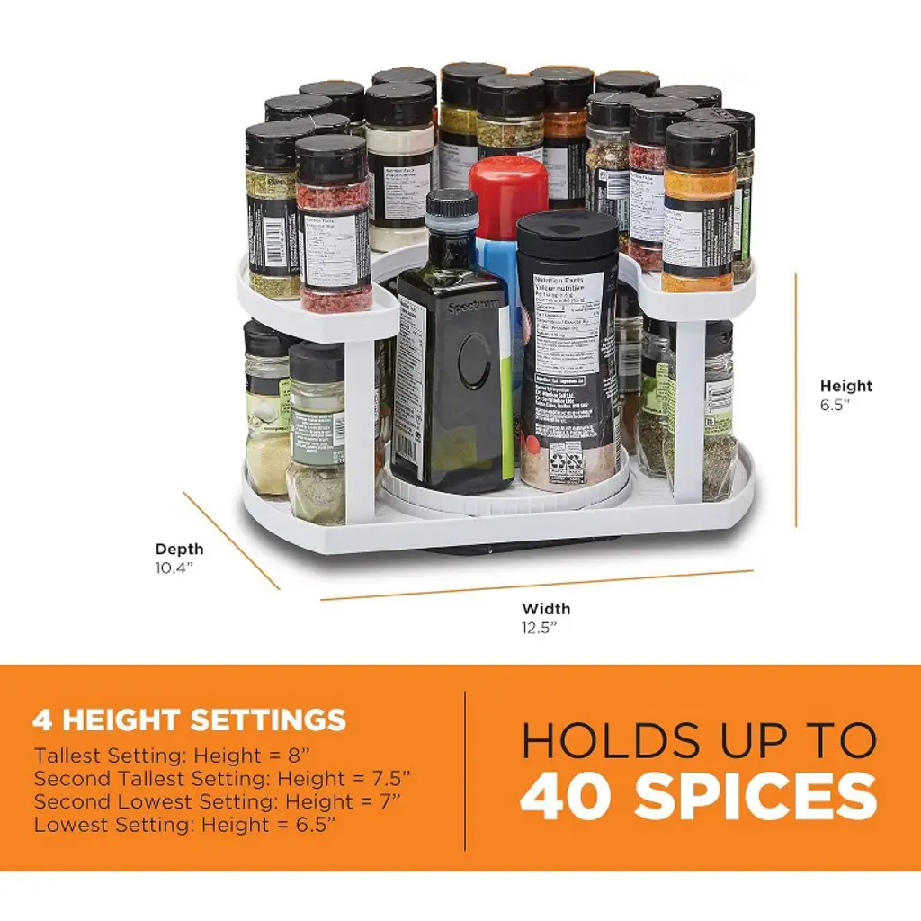 Two-tiered Spice Organizer And Holder That Saves Space, Keeps Everything Neat, Organized & Within Reach With Dual Spin Turntables