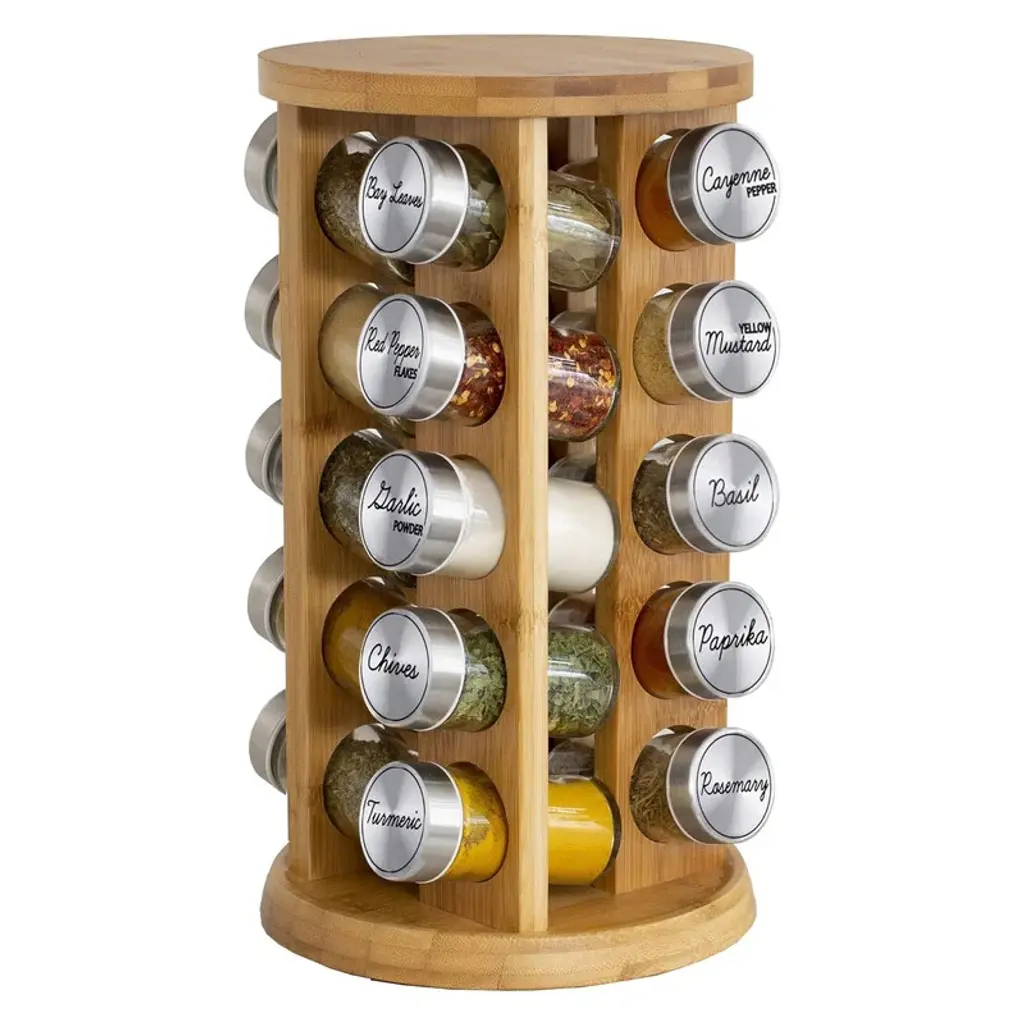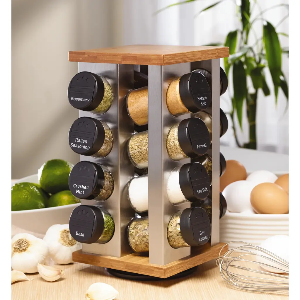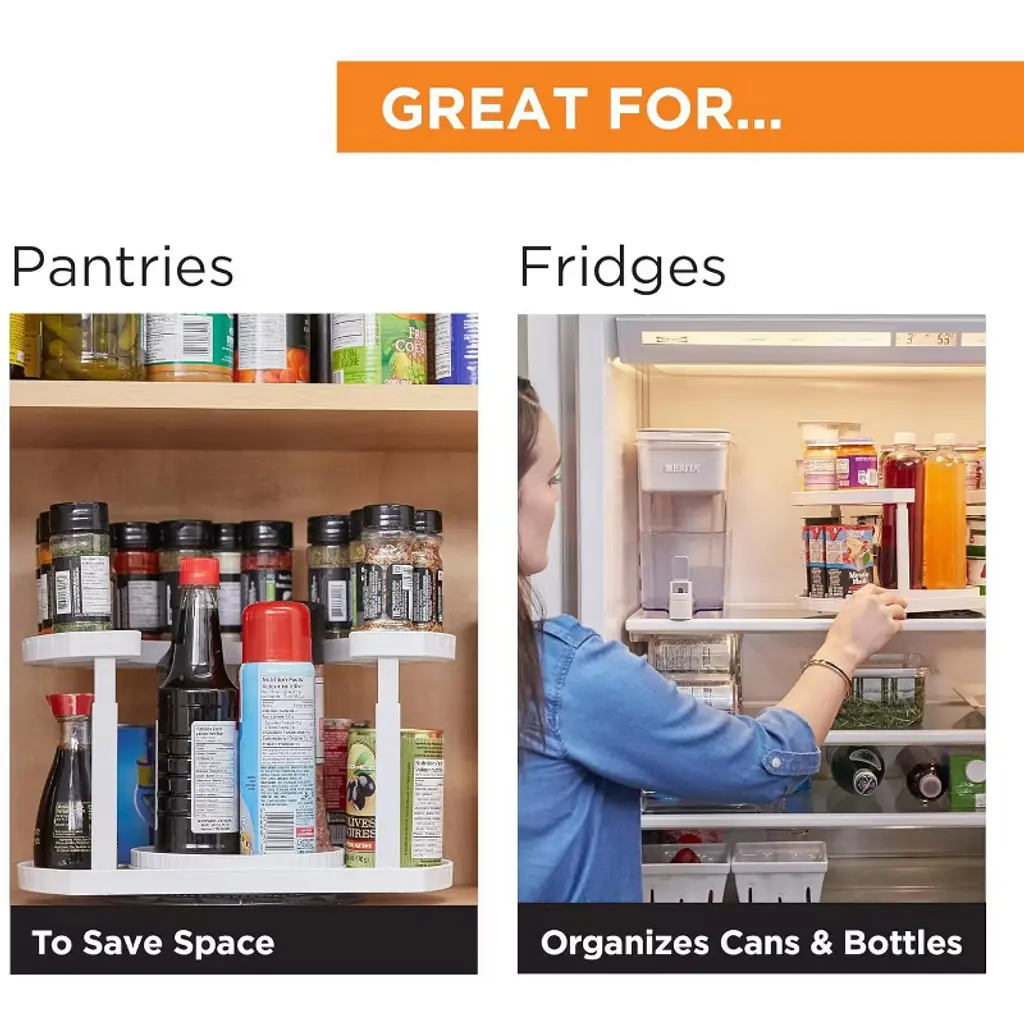Two-tiered Spice Organizer And Holder That Saves Space, Keeps Everything Neat, Organized & Within Reach With Dual Spin Turntables