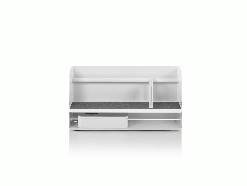 Designed to make compact workspaces more efficient and supportive, Ubi Work Tools (2016) bring order to your desktop. This Ubi Organizer Kit includes a small organizer, Formwork® Box, and rod bookend.