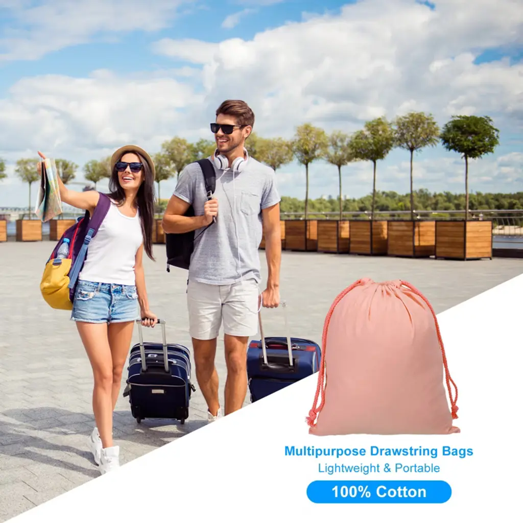Made of 100% cotton, this bag is dustproof, washable, and durable. Its simple design adds elegance and style. The drawstring closure allows for easy access and storage, allowing it to be hung or stored flat in a drawer, shelf, or closet. Cotton Bags can also be used to organize and protect items in a bag or suitcase while traveling or on the go. Suitable for storing crafts, coins, snacks, fruit, coffee beans, and soap. It's widely used at home, in the office, for travel, camping, hiking, and on business trips.