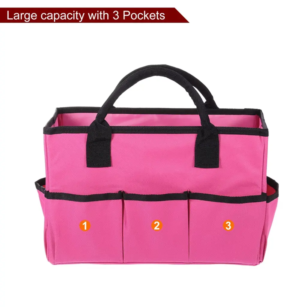 Unique Bargains 600d Oxford Waterproof Garden Tool Organizer Storage Carrier Bags 12.99" X 5.91" X 8.66" Rose Red