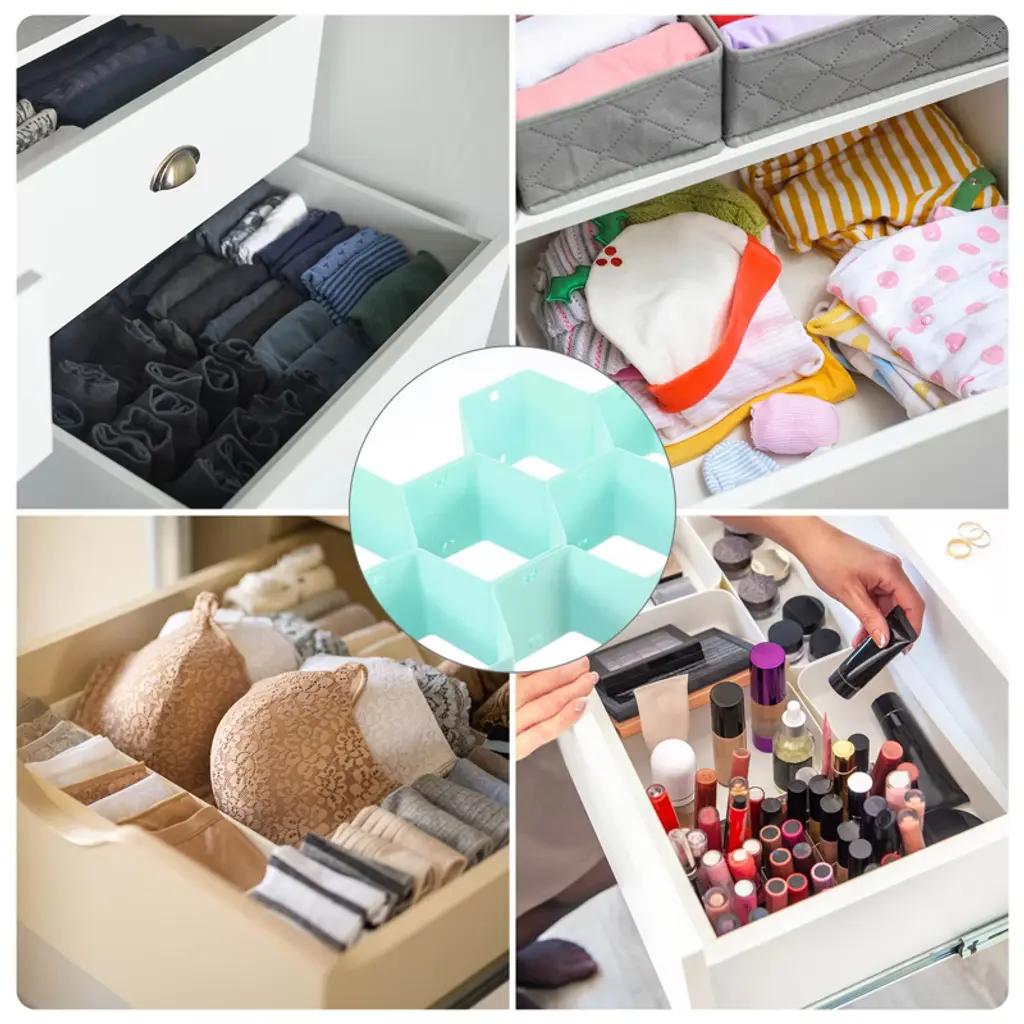 This plastic drawer divider is designed to maximize space and organize your drawers efficiently. Made from durable PP plastic, these dividers are flexible and long-lasting. The interlocking construction allows for easy assembly and disassembly, while the adjustable nature means they can be cut to fit any drawer or cupboard. Ideal for storing socks, underwear, ties, belts, scarves, jewelry, and cosmetics, these dividers ensure that your drawer space is fully utilized. When not in use, they can be folded up for easy storage.