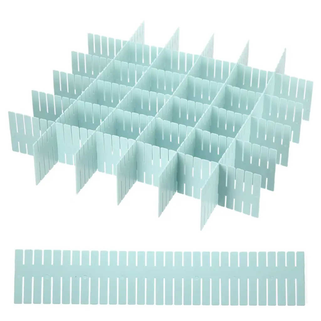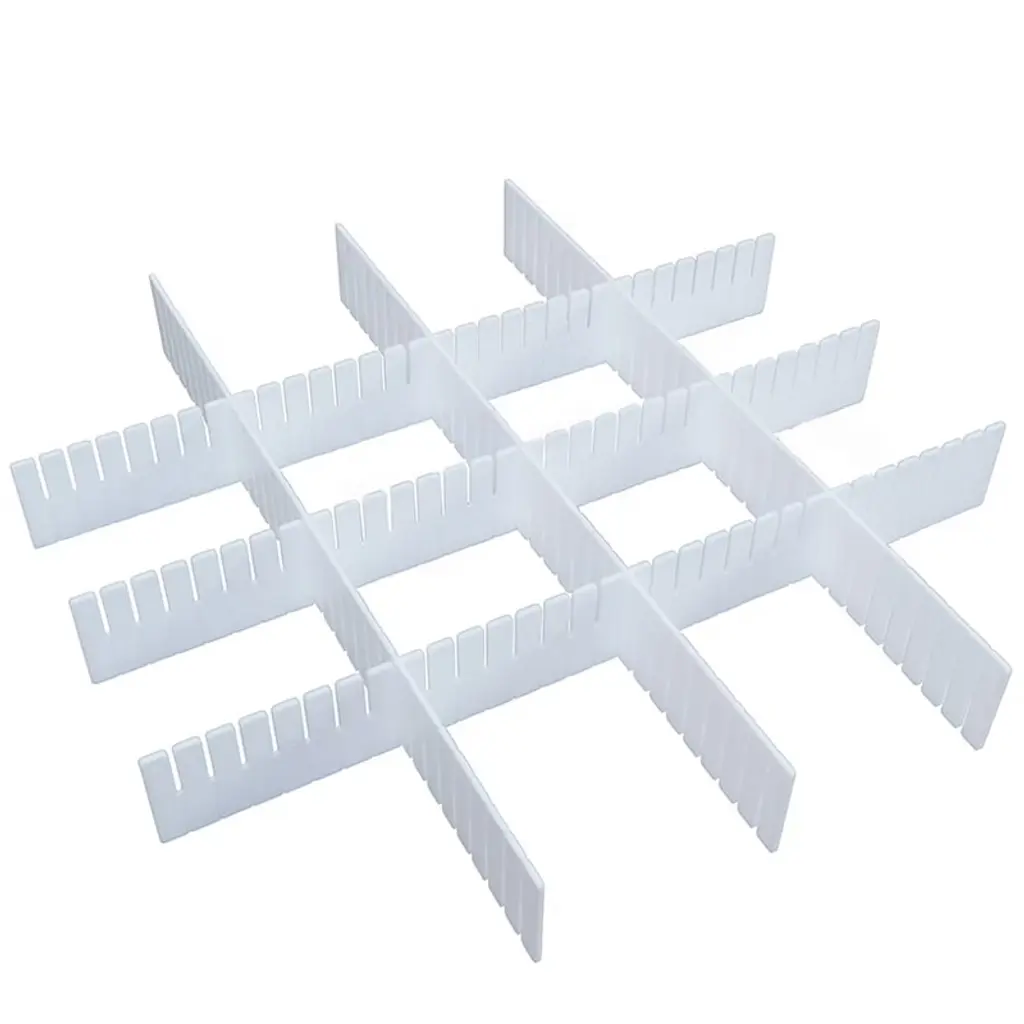 This product features a space-saving design that enhances drawer space utilization, allowing for quick access to your items. It is easy to install, with assembly possible in just one click using the upper and lower slots. The plastic dividers are freely adjustable to fit your needs and can be cut to suit your drawers or cupboards. They are ideal for organizing socks, underwear, ties, belts, scarves, jewelry, and cosmetics. Made from durable and flexible PP plastic, the dividers ensure long-lasting use without scratching your items.