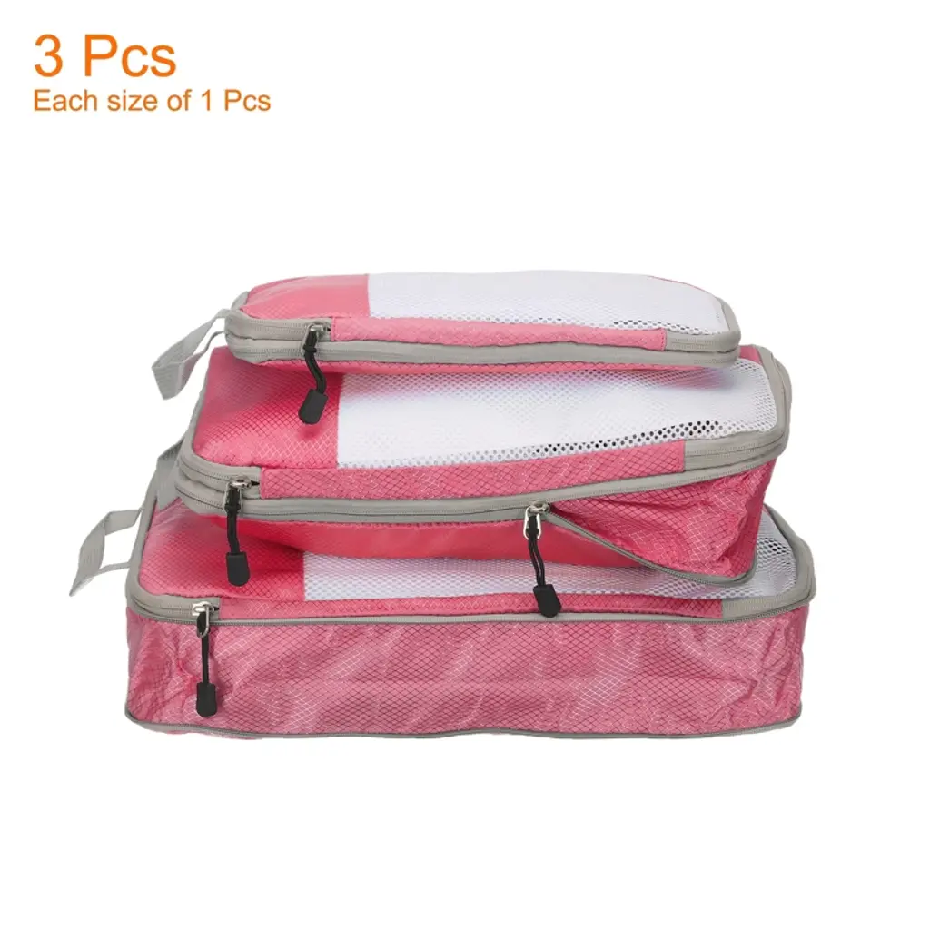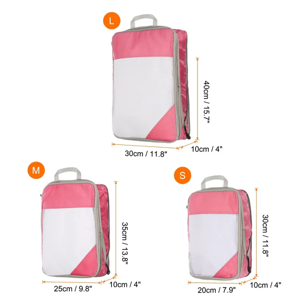 Unique Bargains Suitcases Compression Packing Cube Travel Luggage Organizers Bag 3 Pcs Pink