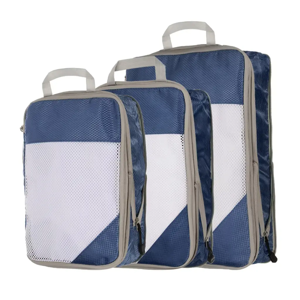 The travel organizer is a lightweight and durable bag designed for organizing, sorting, and storing travel items. The compression organizer is made of polyester, which is lightweight, wear-resistant, and easy to clean. It is equipped with a smooth zipper and has excellent waterproof and dustproof performance, which can effectively protect clothes and other items. The luggage organizer comes with a tote bag, which can be easily removed from the suitcase and placed in the hotel wardrobe or drawer for easy access, keeping items clean and tidy, and can be easily put into a backpack or carry-on luggage, making packing a breeze. Using compression luggage bags to pack luggage can save space, save up to 50% of storage space, fix clothes, prevent shifting and wrinkling, and the size combination is perfect for your carry-on luggage, easily carry your necessities, and meet your travel needs. Use travel storage bag compression bags of different sizes to easily sort and organize different types of items such as clothes and toiletries, store clean and dirty clothes separately, keep clothes and shoes neat and clean without odor, and quickly find what you need. Travel bags can provide a more convenient and comfortable way to store luggage for your family vacation, business trip, weekend trip, and outdoor activities, improve the efficiency of luggage sorting, and make the journey more pleasant and relaxing.