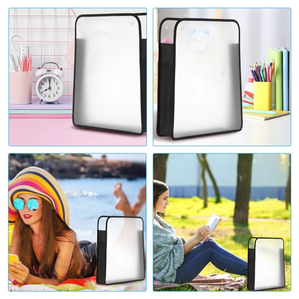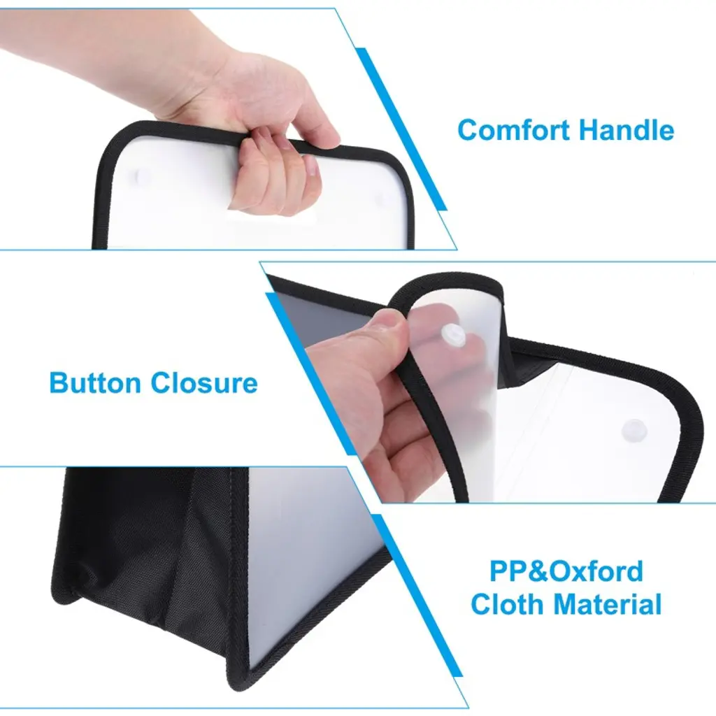Made of durable PP material, it's waterproof, scratch-resistant, and durable. Oxford cloth edging design, comfortable to the touch. The top button closure protects important scrapbook materials and prevents them from getting lost. The transparent design adds a modern, minimalist touch and provides easy access to your essentials. The large capacity accommodates a wide range of storage needs. It can hold a variety of items, such as scrapbooks, documents, papers, cards, photos, stickers, notebooks, cosmetics, and crafts. It's perfect for home, office, the beach, and more. Note: Please confirm dimensions before purchasing.