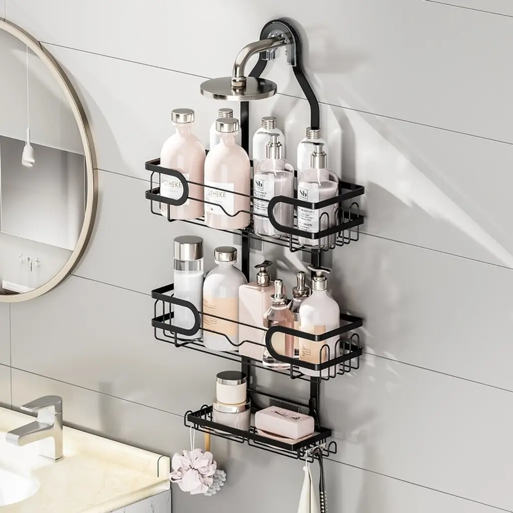 This Shower Caddy is easy to install, upgrade your bathroom with this modern and stylish steel shower caddy - rust - resistant and featuring an attractive matte black finish. This shower caddy is perfect for all kinds of shower products and accessories, including over-showerhead caddies, holders, organizers, and trays. Quick to install and remove with its adjustable brackets, you'll be able to easily mount the caddy over the showerhead without any tools. ENJOY EASY AND NO MESS WATER DRAINAGE: This steel shower caddy's two individual shelves for storage, each with its own drainage slot. Overall dimensions of 12.2" L x 4.7" D x 24.41" H, with shelves of 12.2" L x 4.72" D x 3.35" H and 11.81" L x 3.94" D x 3.15" H and 9.84"L x 3.54" D x 1.18" H, allowing you to store all your items in an organized way. This shower caddy is a durable, space-saving, and adjustable design that is easy to maneuver and offers plenty of storage, and is built to last through all of your daily shower needs! RUST-RESISTANT STEEL SHOWER CADDY: Sturdy and Made from high-grade metal, this shower caddy is built to last. The hollow and open bottom design allows for easy drying. BATHROOM ESSENTIALS & PRODUCTS - This shower caddy is perfect for all kinds of modern bathroom products, including over showerhead caddies, corner shower stools, hanging shower caddies, shower caddies for large shower heads, shampoo holders, and all kinds of bathroom trays, holders and organizers. With its many storage spaces, all your toiletries will have their own space. Say goodbye to boring bathroom spaces. Say hello to a spacious and trendy-looking bathroom. STYLISH AND SLEEK DESIGN: Upgrade your bathroom with this modern and stylish steel shower caddy, perfect for keeping all your items organized and secure. This steel shower caddy adds a perfect and classic touch to your bathroom while keeping all your items neatly organized and secure. You will never be out of style again. This shower caddy suits whatever design you have in your bathroom whether it's rustic, modernized, or chic style. Product Size: Shower caddy: Overall: 12.2" L x 4.7" D x 24.41" H. Shelf 1: 12.2" L x 4.72" D x 3.35" H. Shelf 2: 11.81" L x 3.94" D x 3.15" H. Shelf 3: 9.84"L x 3.54" D x 1.18" H. ABOUT US: UTOPIA ALLEY is a woman-owned and operated business. Our goal is to provide our customers with furniture, home decor, bathroom essentials, and accessories made with expert craftsmanship for years to last. We believe in creating a stylish, comfortable space where you can relax, recharge, and feel inspired.
