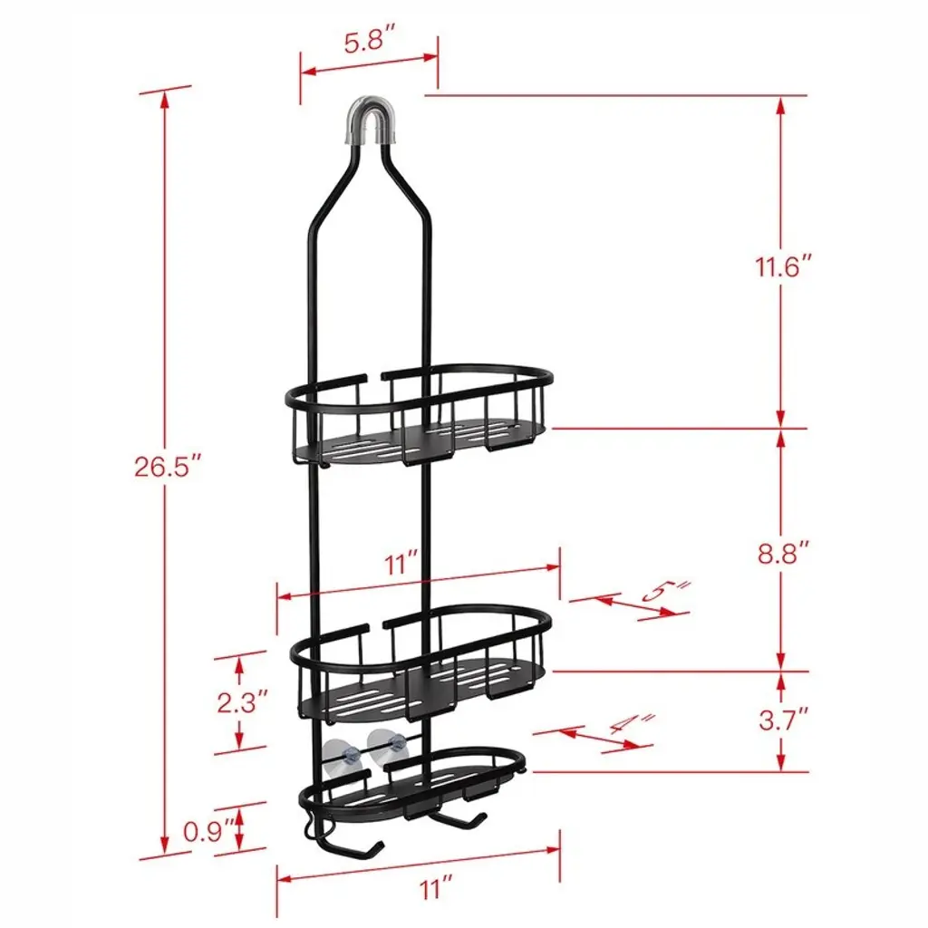 Utopia Alley's Aluminum Shower Caddy is the perfect addition to any bathroom. This rust-proof shower caddy hangs conveniently from the showerhead to provide storage and easy access to all of your soap, shampoo, and other bath items. Made from durable aluminum and featuring exclusive flat shelves, this caddy prevents items from tipping and is perfect for use with handheld showers. The two hooks on the bottom can be used to hang washcloths, sponges, and poufs. With Utopia Alley's Aluminum Shower Caddy, your shower will be neat and organized. Utopia Alley's Aluminum Shower Caddy is specifically designed for those with large shower heads. This caddy features a gripped top, which allows you to hang the caddy from your showerhead with ease. The caddy is also perfect for those with a handheld shower, as the flat shelves can accommodate any type of shower head. For those with limited space, Utopia Alley's Aluminum Shower Caddy is the perfect solution. This over-the-shower head caddy is ideal for organizing all of your bathroom items, and its slim design ensures that it won't take up too much space. It also includes two hooks on the bottom, which are perfect for hanging washcloths, sponges, and poufs. EASY TO INSTALL, NO TOOLS NEEDED: Upgrade your bathroom with this modern and stylish aluminum shower caddy - rustproof and featuring an attractive matte black & chrome finish. This shower caddy is perfect for all kinds of shower products and accessories, including over-showerhead caddies, holders, organizers, and trays. Quick to install and remove with its adjustable brackets, you'll be able to easily mount the caddy over the showerhead without any tools. ENJOY EASY AND NO MESS WATER DRAINAGE: This aluminum shower caddy's three individual shelves for storage, each with its own drainage slot. Overall dimensions of 11" L x 5" D x 26.5" H Shelf 1 & 2: 11" L x 5" D x 2.3" H Shelf 3: 11" L x 4" D x 0.9" H, allowing you to store all your items in an organized way. This shower caddy is a durable, space-saving, and adjustable design that is easy to maneuver and offers plenty of storage, and is built to last through all of your daily shower needs! RUST-PROOF ALUMINUM SHOWER CADDY: Never worry about rust again with this rustproof aluminum shower caddy. Reinforced with a resistant finish, you can use it for many years without ever worrying about rust and ensuring a long and rust-free life even with frequent use! That's one worry-free additional classic bathroom accessory you definitely need in your home to make your everyday easy. BATHROOM ESSENTIALS & PRODUCTS - This shower caddy is perfect for all kinds of modern bathroom products, including over showerhead caddies, corner shower stools, hanging shower caddies, shower caddies for large shower heads, shampoo holders, and all kinds of bathroom trays, holders and organizers. With its many storage spaces, all your toiletries will have their own space. Say goodbye to boring bathroom spaces. Say hello to a spacious and trendy-looking bathroom. STYLISH AND SLEEK DESIGN: Upgrade your bathroom with this modern and stylish aluminum shower caddy, perfect for keeping all your items organized and secure. This aluminum shower caddy adds a perfect and classic touch to your bathroom while keeping all your items neatly organized and secure. You will never be out of style again. This shower caddy suits whatever design you have in your bathroom whether it's rustic, modernized, or chic style. ABOUT US: UTOPIA ALLEY is a USA/woman-owned and operated business, you can shop with confidence for home decor, furniture bathroom accessories, and products with tailored needs. We believe in creating a stylish, comfortable space where you can relax, recharge, and feel inspired. Our products are expertly crafted to look visually beautiful, sophisticated, and constructed to last you for many years.