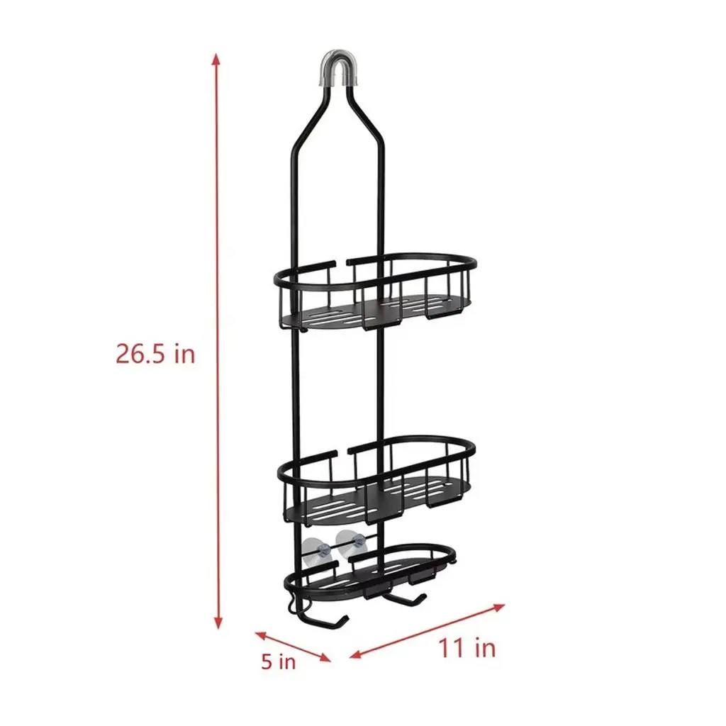 Utopia Alley Rustproof Aluminum Shower Caddy - Hanging Shower Caddy Organizer With 3 Shelves, Chrome & Matte Black Finish - Black - 11*5*26.5"