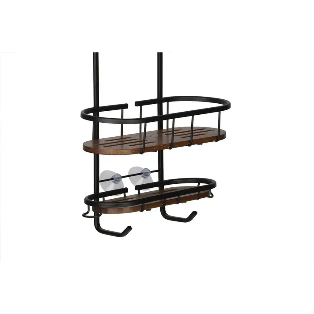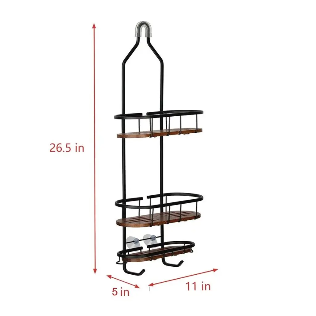 Utopia Alley Tia Rustproof Teak Overhead Shower Caddy With 3 Shelves, Hanging Shower Head Organizer, Black & Chrome Finish - Black - 11*5*26.5"