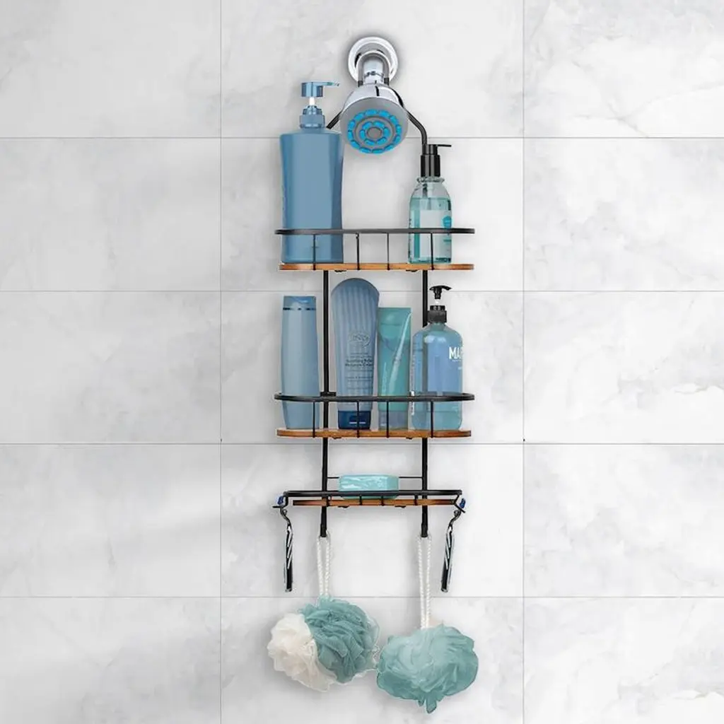 Utopia Alley Tia Rustproof Over the Shower Caddy - the ultimate over-the-head shower caddy! This conveniently designed shower caddy is perfect for any bathroom, providing extra storage and organization in a minimalistic, modern style. Utopia Alley Tia Rustproof Over the Shower Caddy is crafted with rustproof aluminum and flat teak shelves, which prevent items from tipping over. With a gripped top and two hooks on the bottom, this caddy conveniently hangs from the showerhead, giving you easy access to soap, shampoo, washcloths, and more. Plus, it's perfect for use with handheld showers and can fit into even the tightest of spaces. Utopia Alley Tia Rustproof Over the Shower Caddy is an all-in-one shower caddy, so you can say goodbye to the days of searching for all your bathroom items. This caddy features enough room for all your toiletries, and its unique design allows it to accommodate even the largest of shower heads. In addition, it comes with extra shelves and hooks for more storage space. And with Utopia Alley Tia Rustproof Over the Shower Caddy, you don't have to worry about rust - it's designed to withstand the moisture in your shower without ever corroding. Utopia Alley Tia Rustproof Over the Shower Caddy is the perfect addition to any bathroom. With its sleek design, this caddy will look great in any setting. Plus, its cleverly constructed shelves make it easy to keep your shower organized and clutter-free. And with its rustproof aluminum construction, you can be sure that Utopia Alley Tia Rustproof Over the Shower Caddy will last for years to come. Start enjoying your new, organized shower! EASY ACCESS TO EVERYTHING: Our Tia Over the Shower Head Caddy is the perfect storage solution for your bathroom, featuring two individual shelves for housing all your shower essentials like shampoo bottles, soaps, and sponges. You will never have a hard time looking for your toiletries because these shower caddy storages are easy to access while keeping your essentials safe and secure from fall. QUICK AND SIMPLE TO INSTALL: No need to be skilled and professional in installing this shower caddy. This shower caddy is perfect for all kinds of shower products and accessories. Quick to install. you'll be able to easily mount the caddy over the showerhead without any tools. You can enjoy a neat and organized bathroom in no time and a hassle-free organization! GENEROUS STORAGE SPACE: Overall: 11" L x 5" D x 26.5" H Shelf 1 & 2: 11" L x 5" D x 2.3" H Shelf 3: 11" L x 4" D x 0.9" H. This shower caddy provides more shower space and organization, making it perfect for guest bathrooms and everyday use. You will never have a hard time with your bathroom organization because you can put all your bathroom toiletries like shampoos, body washes, loofahs, lotions, conditioners, and more. GET IN STYLE: Be organized with our Over The Shower Head Caddy and enjoy rustproof, aluminum construction and real teak base for a spa-like bathroom experience. Its matte black & chrome finish and sleek design make it a perfect fit for any bathroom. With no tools required for installation, you can easily hang this shower caddy over your shower head for effortless storage and organization. RUST-PROOF CADDY: Perfect for housing your toiletries and creating more shower space, this caddy is perfect for both small and large shower heads. Plus, with its durable construction and rustproof finish, this caddy will remain in your bathroom for years, even in wet environments. Get ready to enjoy a more organized and elegant bathroom with Utopia Alley Over the Shower Head Caddy. ABOUT US: UTOPIA ALLEY is a USA/woman-owned and operated business, you can shop with confidence for home decor, furniture bathroom accessories, and products with tailored needs. We believe in creating a stylish, comfortable space where you can relax, recharge, and feel inspired. Our products are expertly crafted to look visually beautiful, sophisticated, and constructed to last you for many years.