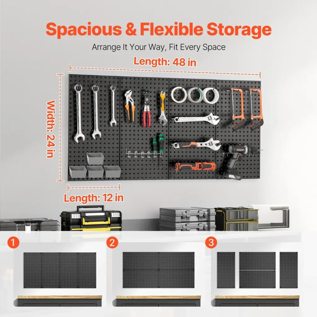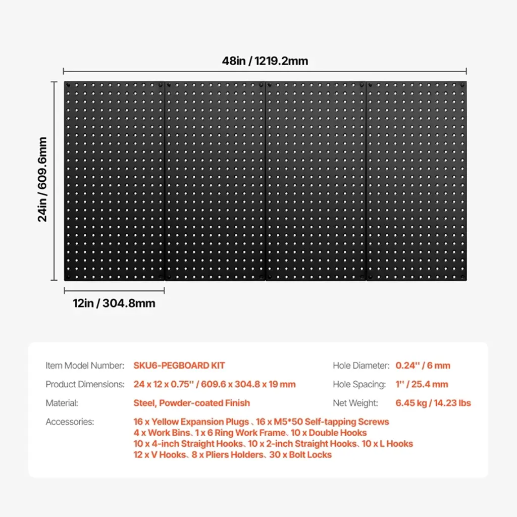 Vevor Metal Pegboard Panels, 24" X 12" Pegboard, 4 Panels, Heavy Duty Peg Board Wall Organizer With Accessories, Black