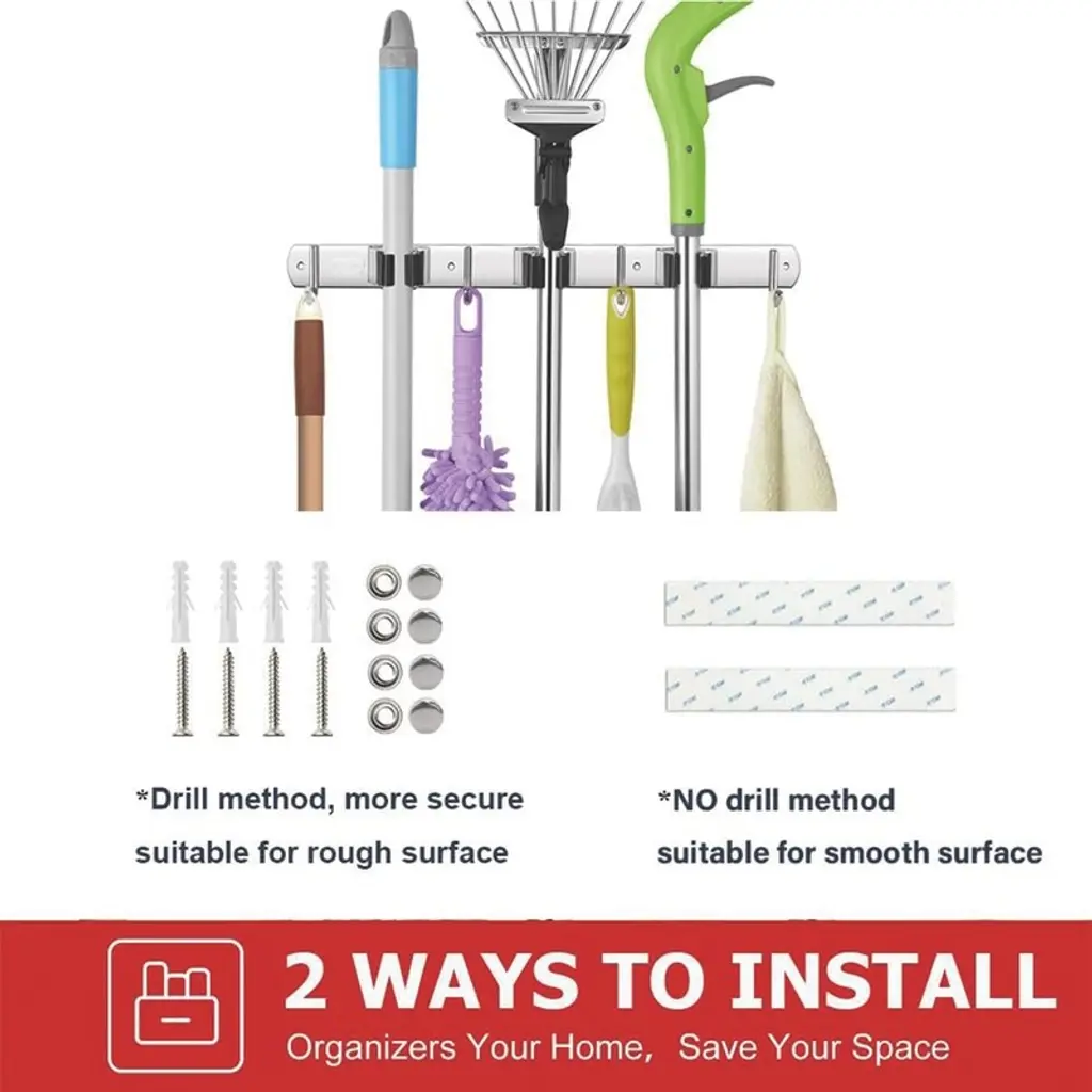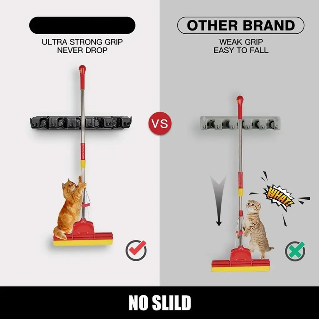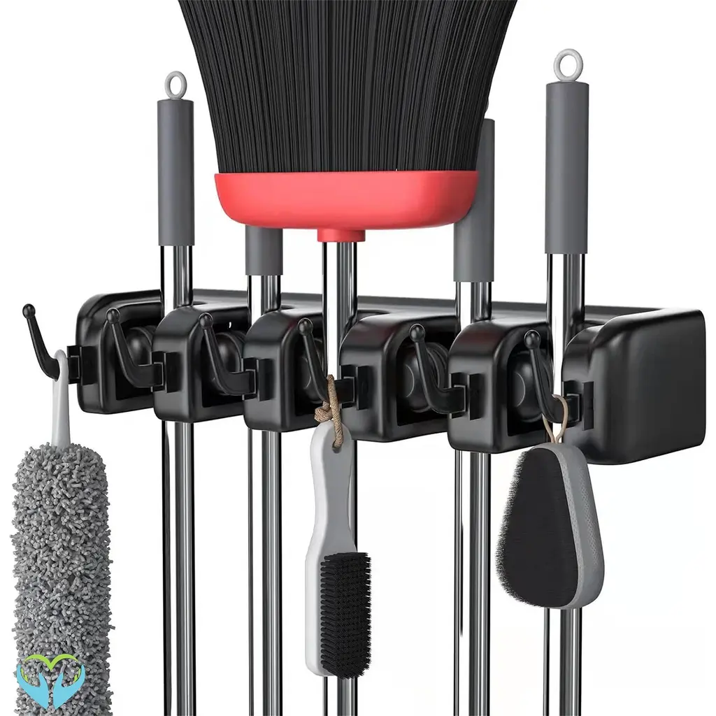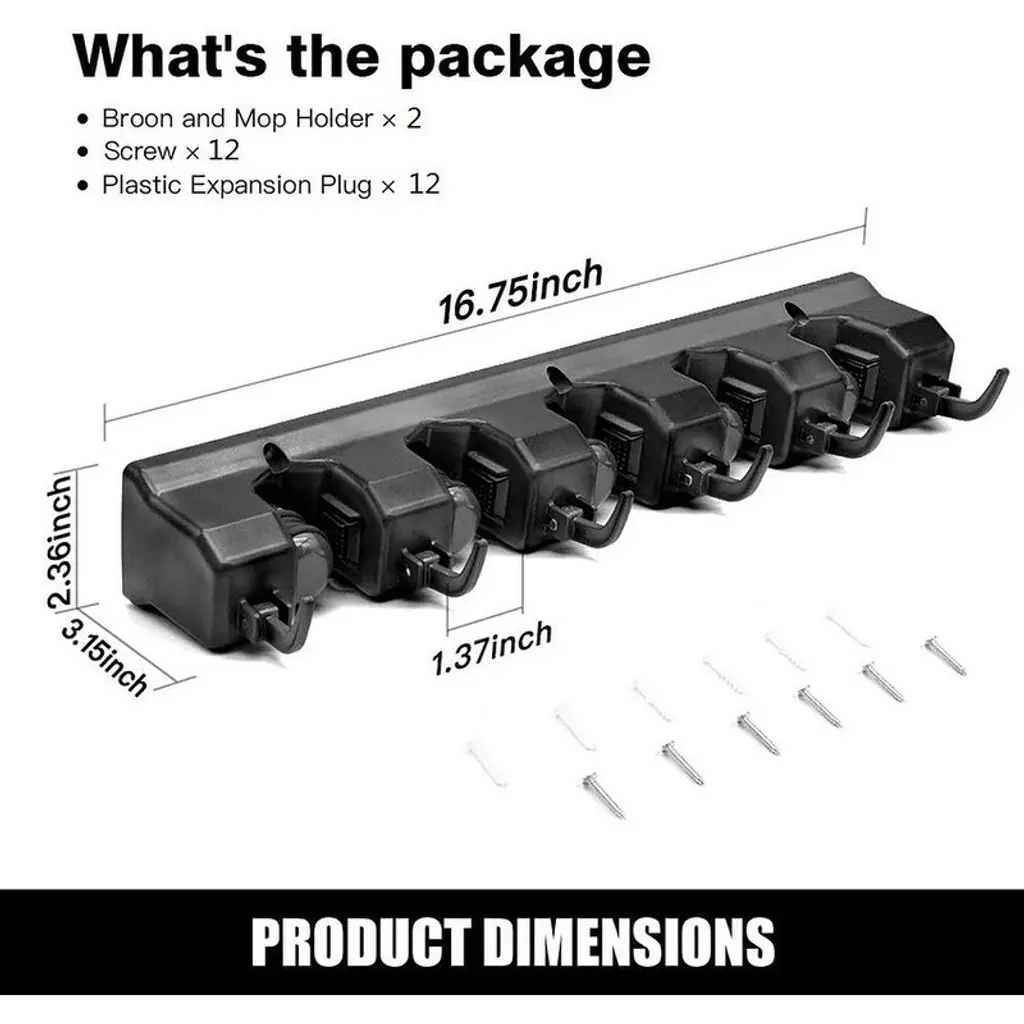 Wall Mounted Organizer Mop And Broom Storage Tool Rack - Black