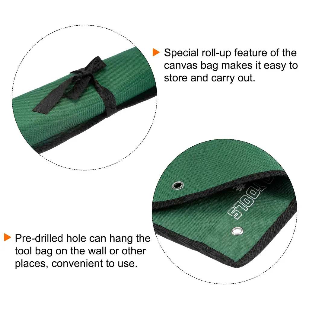Wrench Organizer 8 Pockets 14.6" X 11.8" Canvas Roll Up Pouch Tool Bag Holder - 14.6" X 11.8" - Green