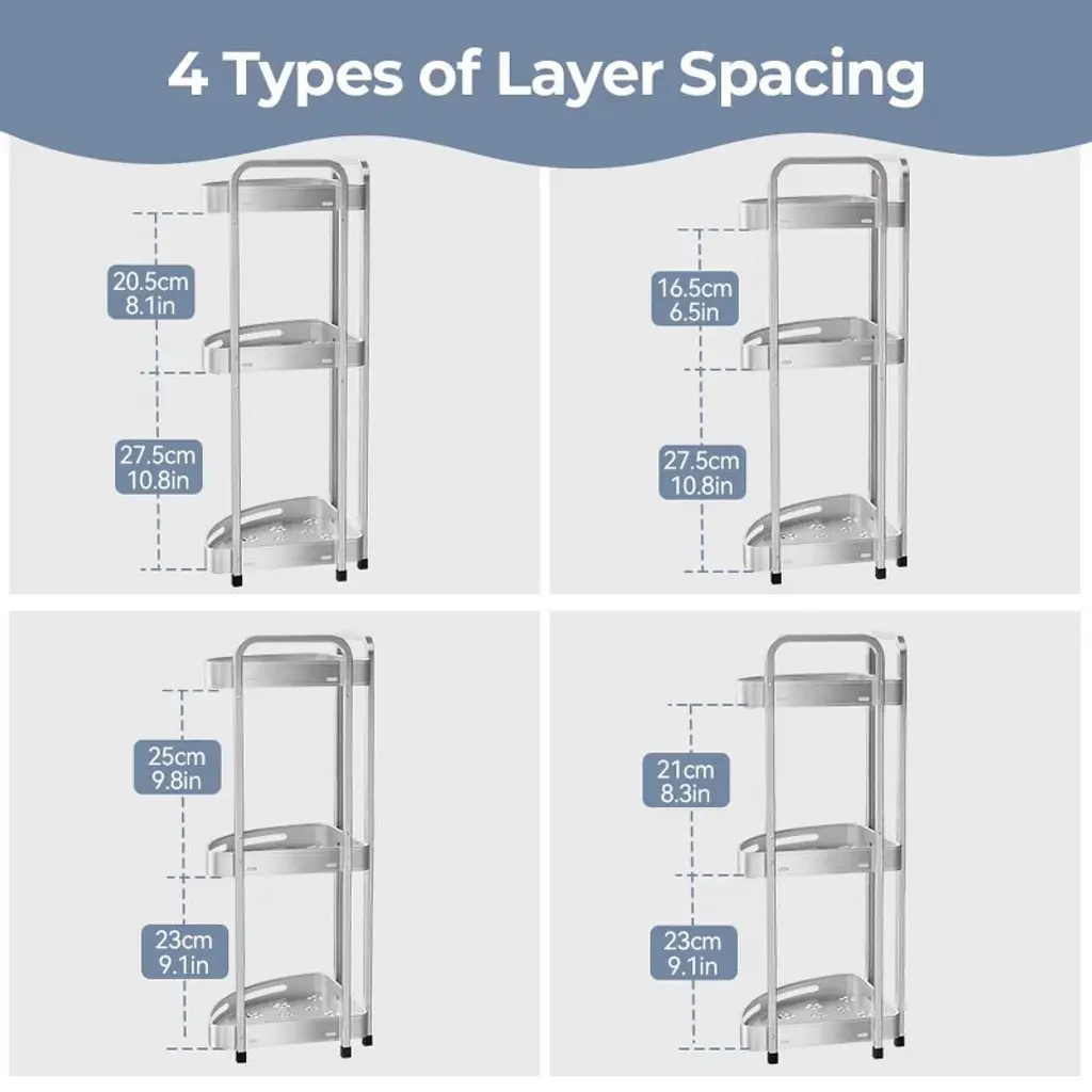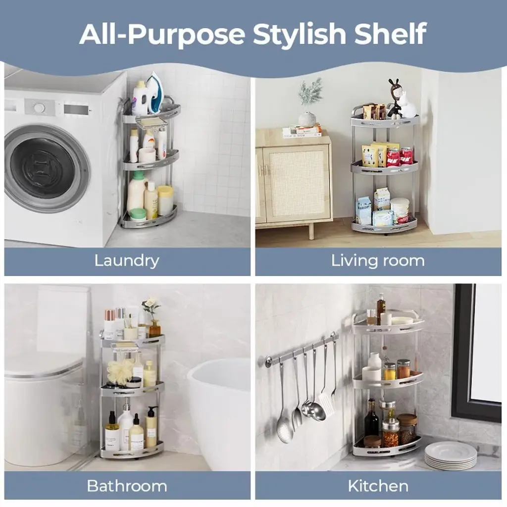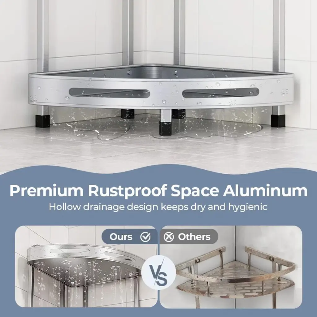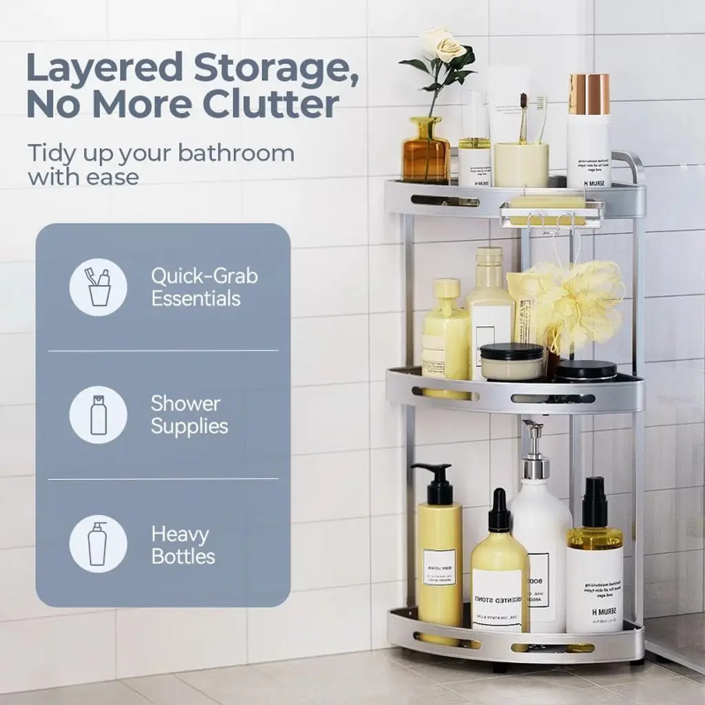 Upgrade Your Bathroom Game with This Sleek Corner Shower Caddy!Maximize your bathroom space without sacrificing style. This 3-tier corner shower caddy fits snugly in any corner, turning clutter into clean. Built with rust-resistant aluminum, it holds up to 13 lbs per shelf, perfect for those family-size shampoo bottles, body wash, razors & more.✔Space-saving design✔Built-in soap holder + razor hooks✔Slip-resistant feet with rubber sleeves for extra stabilityNo tools? No problem. Assembly is a breeze. Whether you're refreshing your bathroom or organizing your college dorm, this modern shelf adds instant style and function.SPECIFICATIONSSpecial Feature: Rust Proof, Space SavingProduct Dimensions: 12"D x 8.7"W x 22.3"HStyle: ModernSize: 3-tierAssembly Required: YesPACKAGING INCLUDES1x Corner Shower Caddy StandCONTACT USIf you have any problems with our items or services, please feel free to contact us any time.We are always online and do our best to solve your problems and provide you with the best customer services.