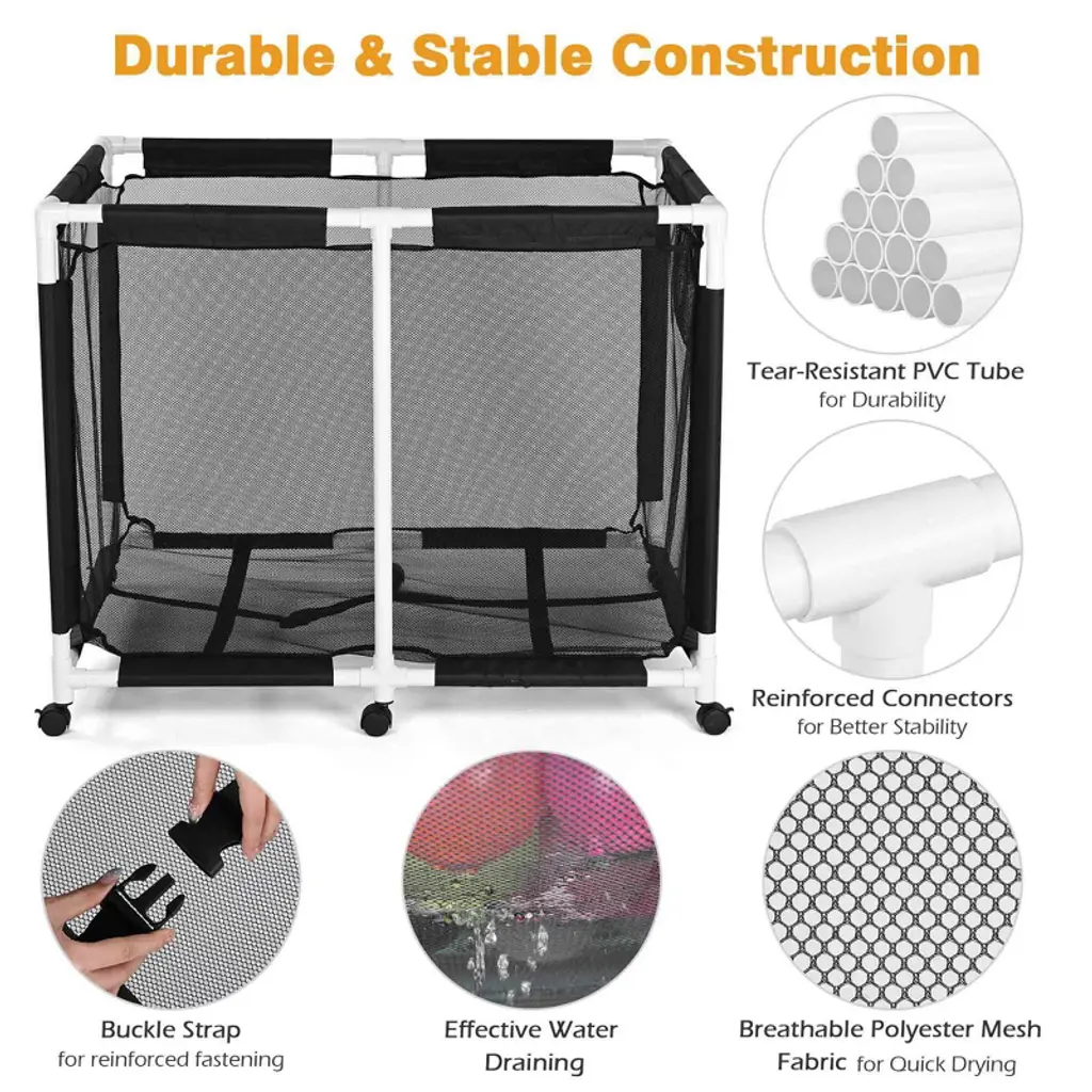 Yescom Extra Large Mesh Pool Storage Bin 214 Gallon Noodles Holder Toys Organizer 6 Wheels Rolling Cart Black