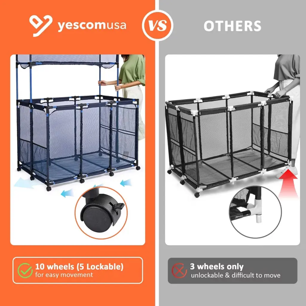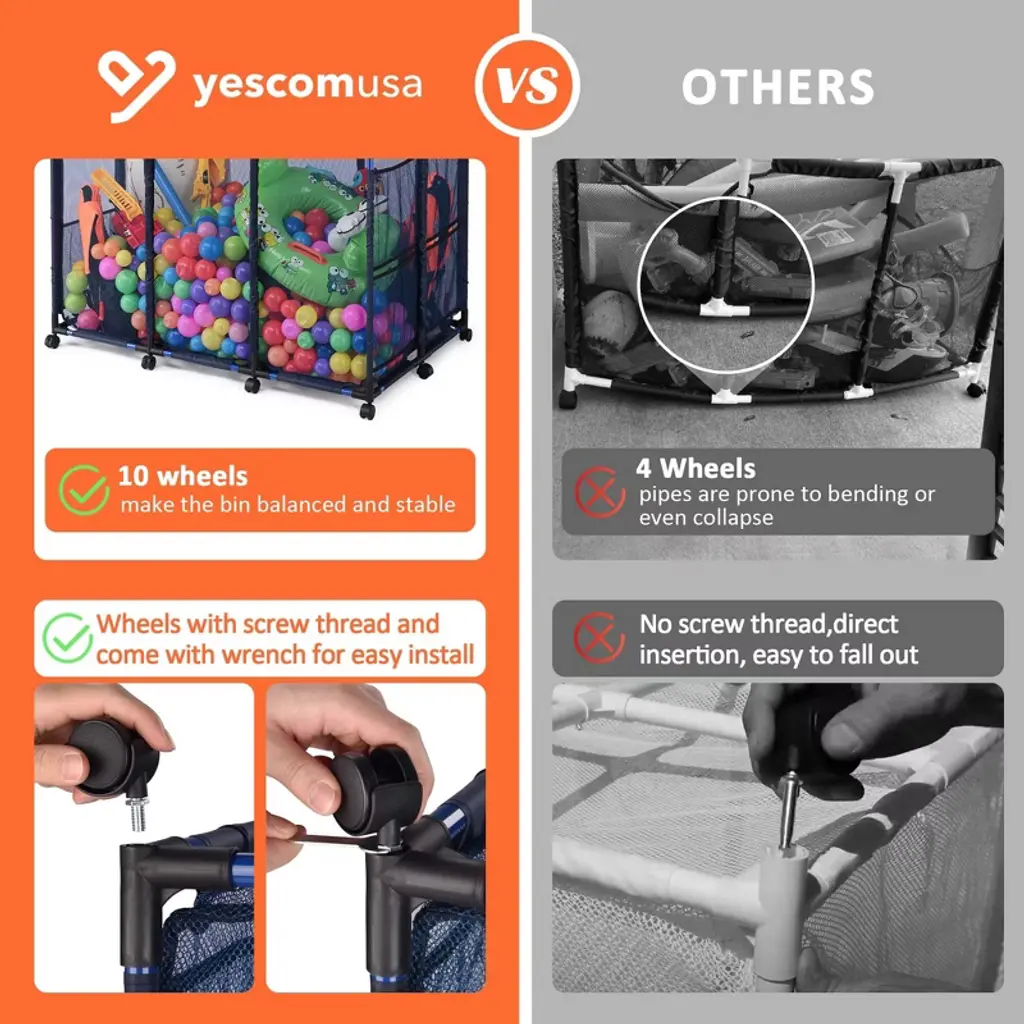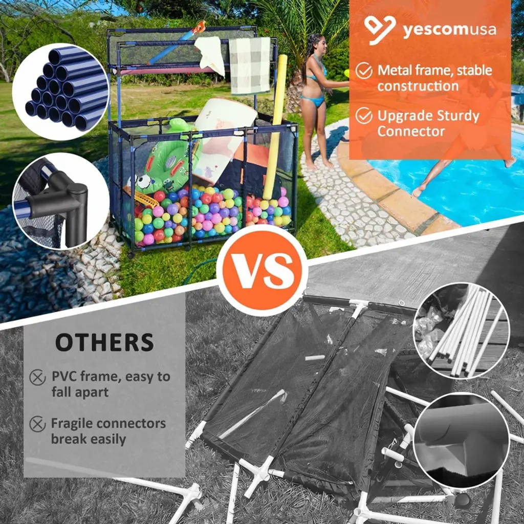 Yescom Metal Frame 10 Wheels Rolling Mesh Pool Storage Bin Xx-large Double Decker With Noodle Holder Pool Float Storage Organizer, Blue