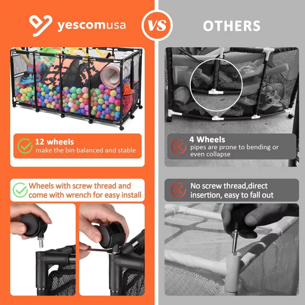 Yescom Metal Frame Extra Large 12 Wheels Rolling Mesh Pool Storage Bin 65"x 30"x 33" Pool Toy Floats Storage Organizer For Public Pools, Black