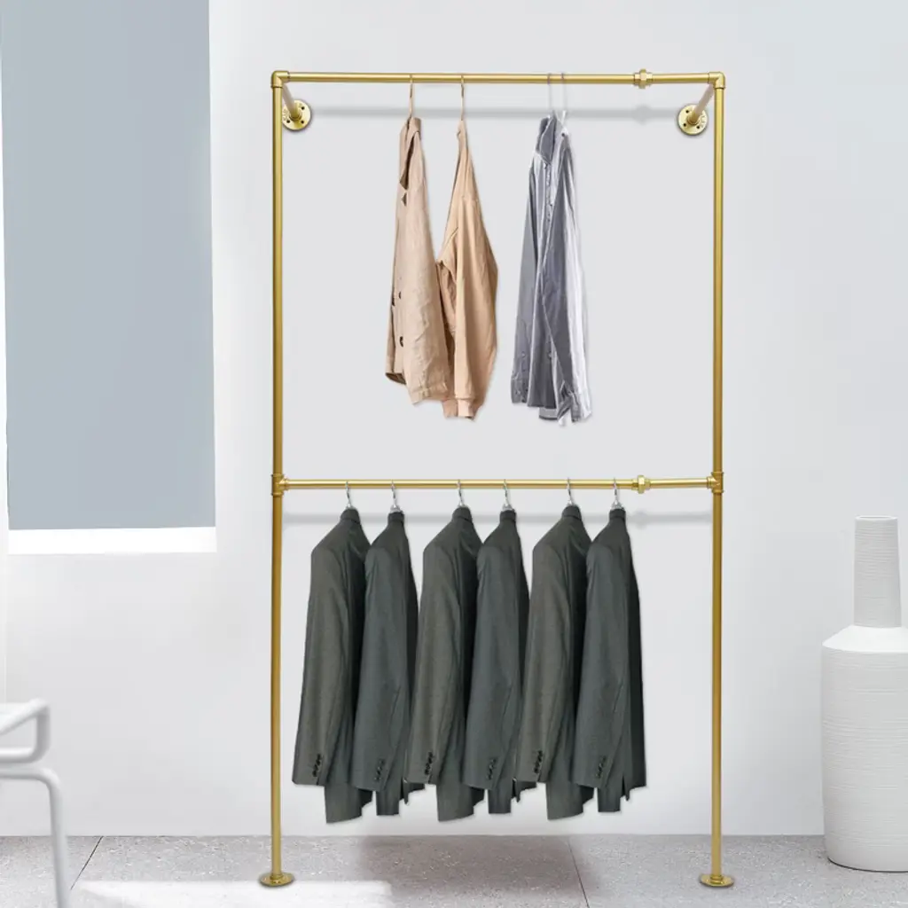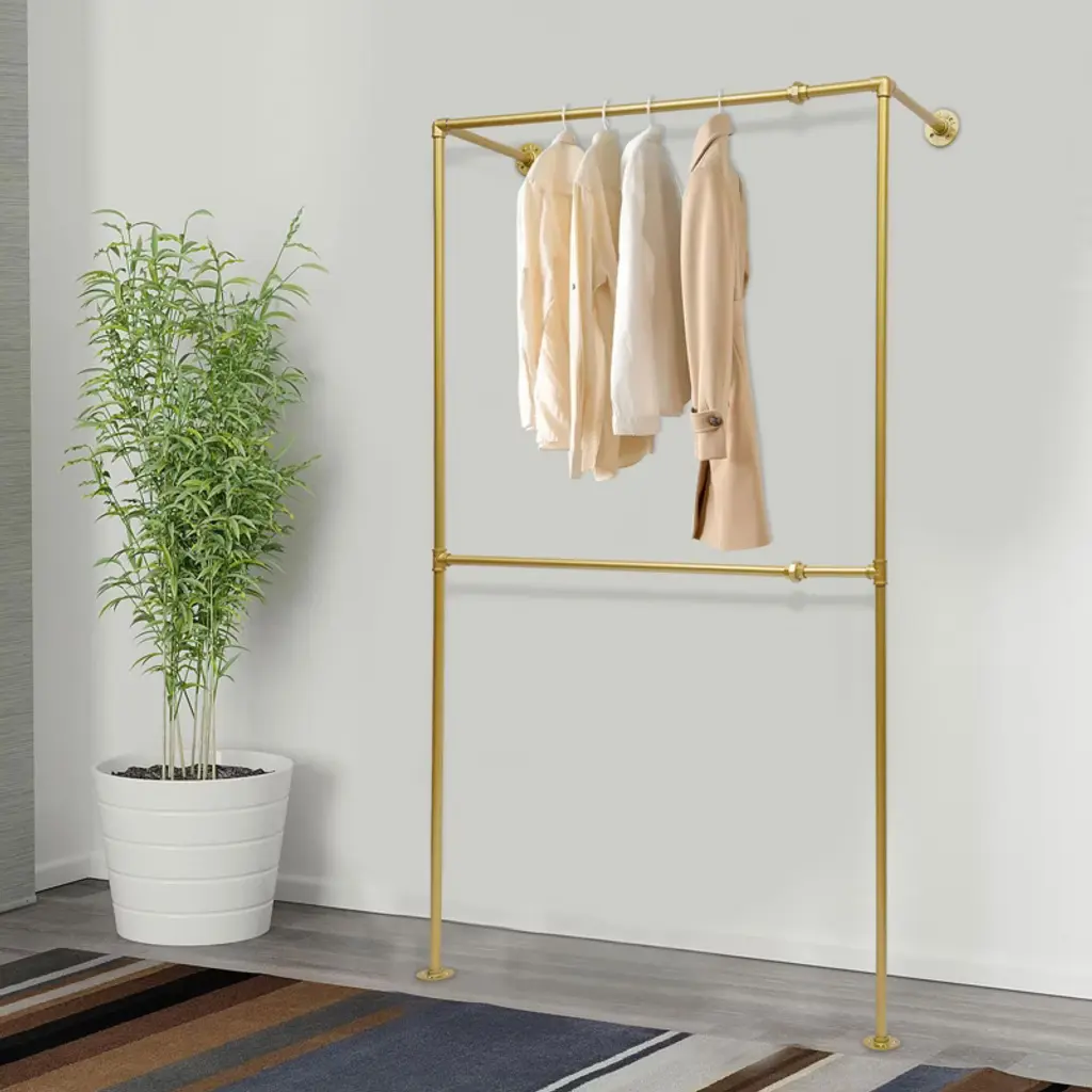The floor coat rack presents a sophisticated and practical solution for optimizing space in your living quarters without the need for drilling or permanent installations. Engineered with precision to blend seamlessly into any modern household, this rack boasts a sleek gold finish that exudes elegance while providing robust functionality.