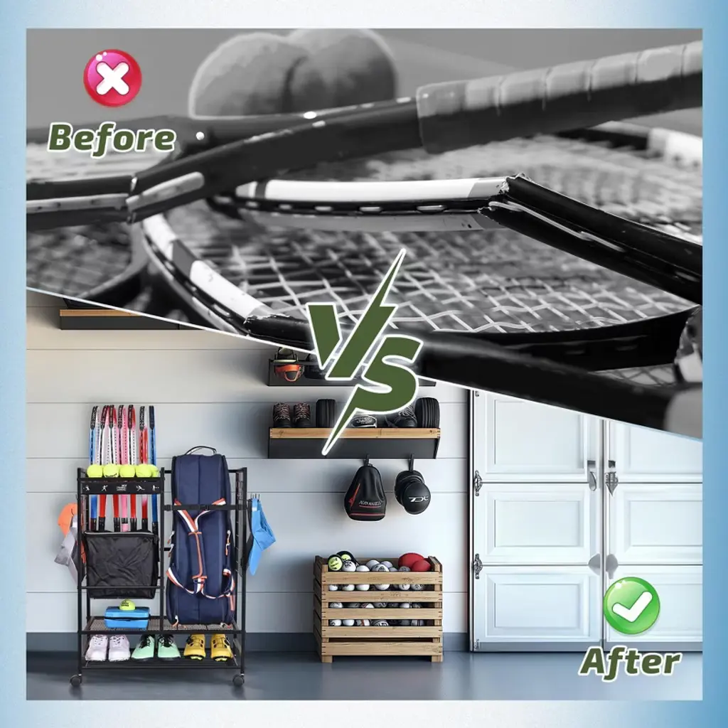 Zachvo Tennis Rack Organizer: All-in-one Storage For Bags, Balls, Rackets & Gear