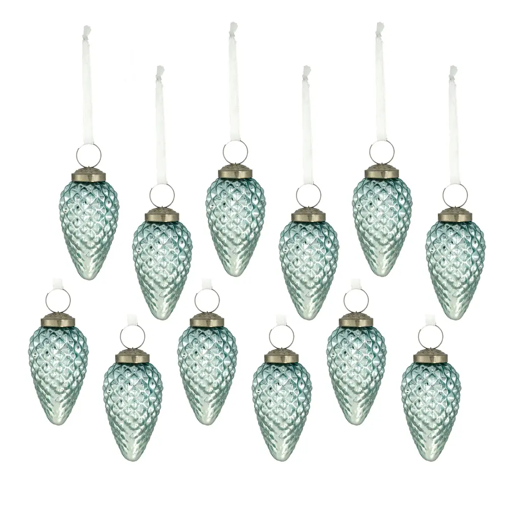 1.7x1.7x3.1" Tear Drop Ornament, Glass Decorative Hanging Christmas Tree Ornaments For Holiday Decorations, Set Of 12 - Blue