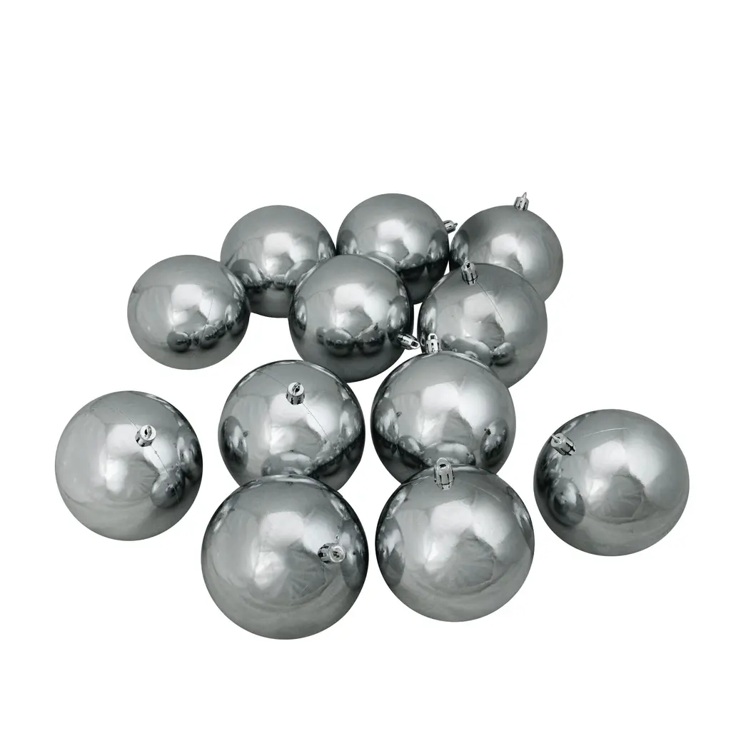 12ct Pewter Gray Shatterproof Shiny Christmas Ball Ornaments 4" (100mm) - Grey