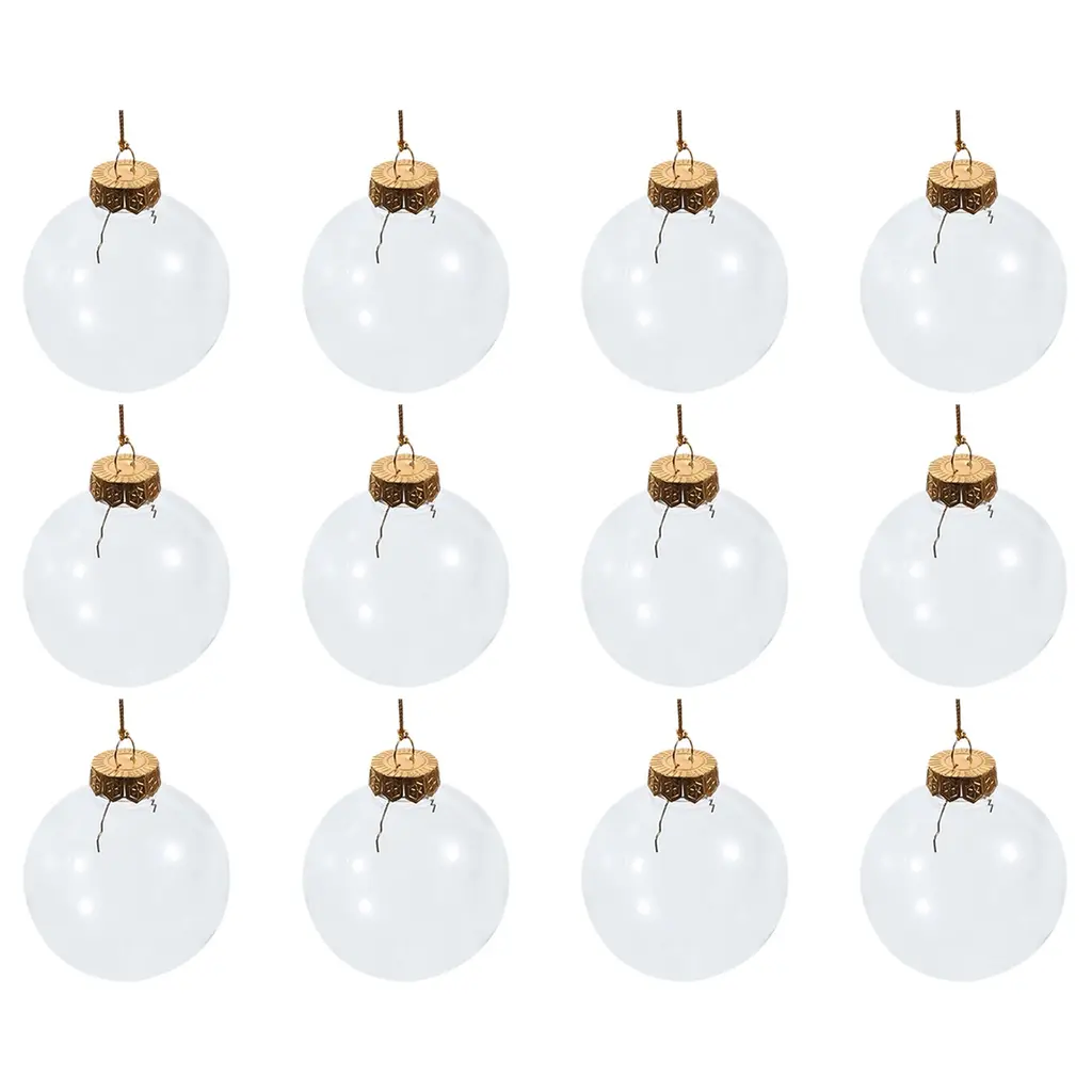 12pcs 2.36" 3.15" Clear Plastic Ornaments Balls With 30cm Rope,gold - Clear