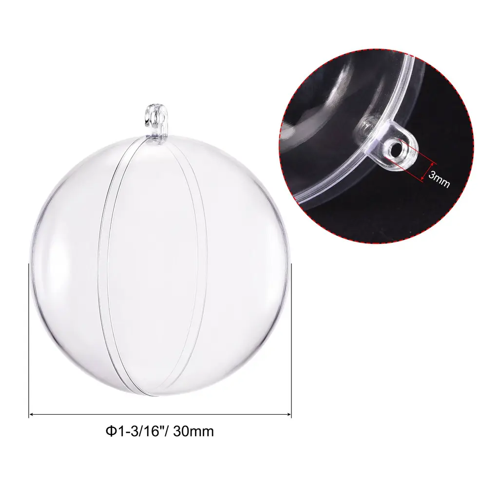 Specification:Hole diameter: 3mmColor: Clear/TransparentMaterial: Acrylic Package content: 12pcs x Acrylic BallDescription:1.Suitable for Christmas trees, shopping malls, hotel decoration, home decoration, festival indoor and outdoor decoration, gift wrapping.2.The plastic ornaments ball can be hung up in any place you want to decorate.3.Made of Acrylic, lightweight4.Applications: ornament ball can be used in shopping malls decoration hanging ball; wedding decoration hanging ball; Festival hanging decoration; DIY handmade ball, etc.