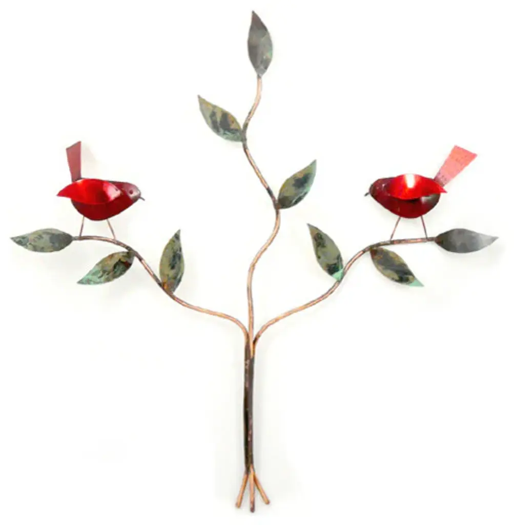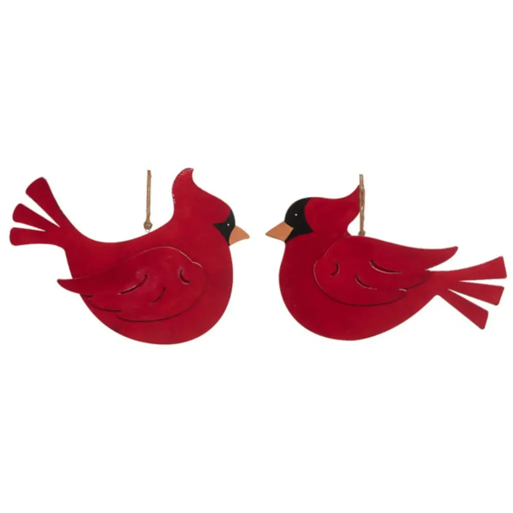 Specification:Description: Add charm to your holiday decor with these Galvanized Cardinal Ornaments, featuring a pair of intricately cutout bird designs made from rustic grey metal. Each cardinal ornament is highlighted by a vibrant red wooden wing and perched atop a white metal branch for a striking contrast. The ornaments come equipped with a sturdy jute string loop for easy hanging on a Christmas tree, wreath, or any seasonal display in your home. These 4.25” x 4.75” ornaments are perfect for enhancing your holiday ambiance and bring a touch of nature to your winter celebrations.