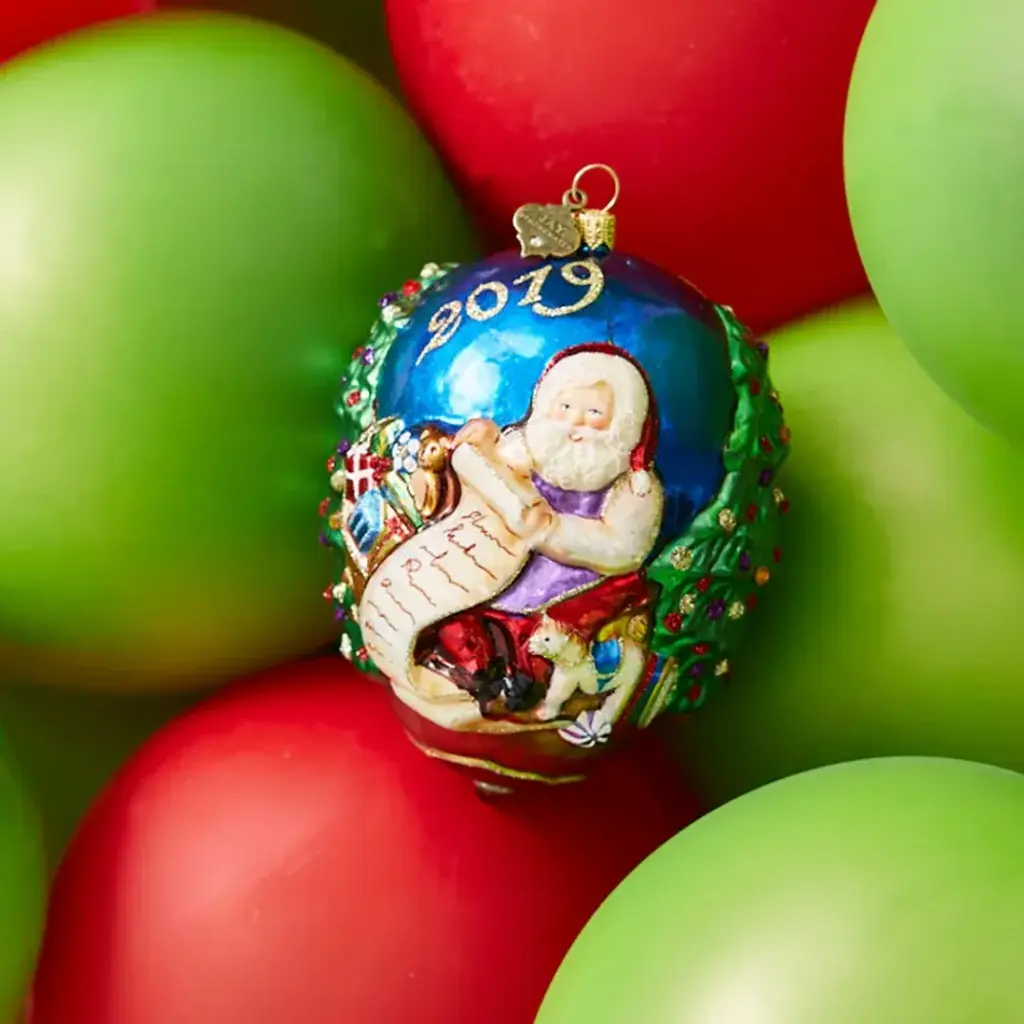 Santa is checking his list and putting the final touches on the gifts he will be delivering this 2019 Christmas Holiday. Our first dated 2019 Santa ornament was sculpted first in clay and then mouth-blown in glass by old-world glass artisans in Poland. Hand-painted with jewel tone enamels, glitter and hand-set with sparkling Swarovski® crystals.